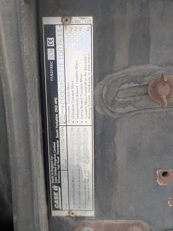 CASE CX 80 TRACTOR MINIMUM OVERHEAD CLEARANCE 9FT 5IN HOURS 1249 IDENTIFICATION NUMBER CO8OAS3JJE1007611