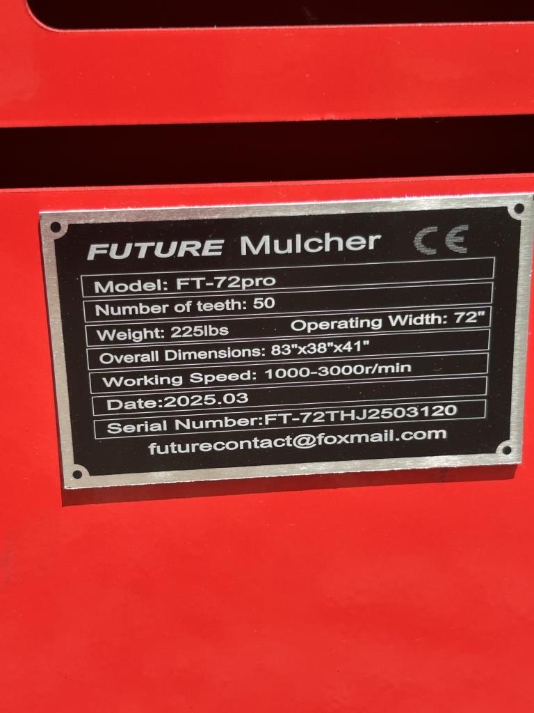 NEW MULCHER NUMBER OF TEETH 50 WEIGHT 225LBS DIMENSIONS 83 INCH BY 38 INCH BY 41 INCH SERIAL NUMBER FT 72THJ2503120
