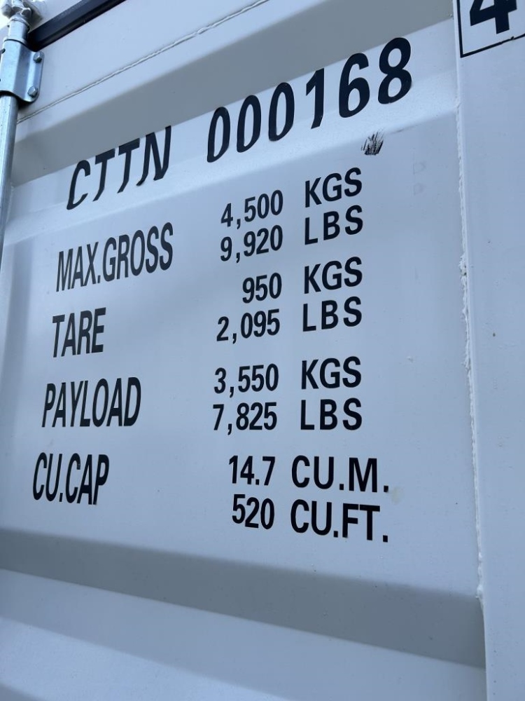NEW CTTN 000168 MAX GROSS 4500 KGS 9920 LBS TARE 950 KGS 2095 LBS PAYLOAD 3550 KGS 7825 LBS