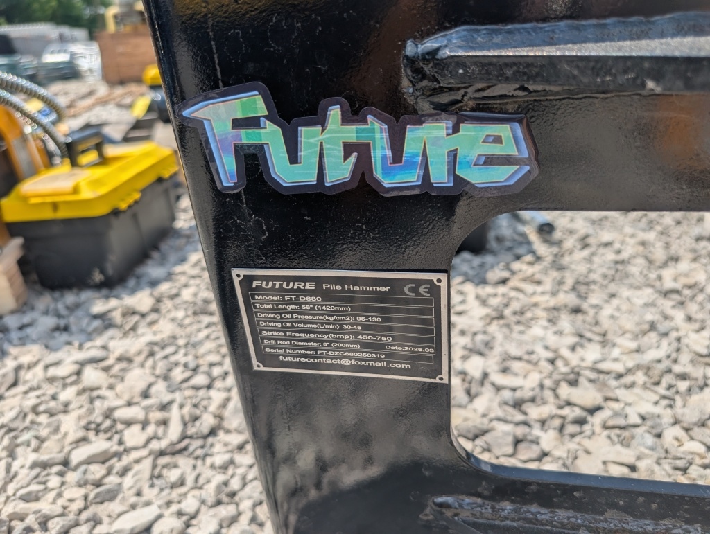 NEW SKID STEER PILE HAMMER ATTACHMENT MODEL FT D680 TOTAL LENGTH 56 INCHES DRILL ROD DIAMETER 8INCHES SERIAL NUMBER FT DZC680250319