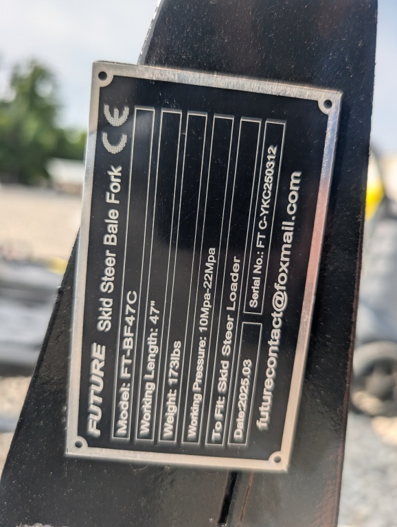 FUTURE 2025 SKID STEER BALE FORK MODEL FT BF47C TO FIT SKID STEER LOADER, SERIAL NO FT C YKC250312