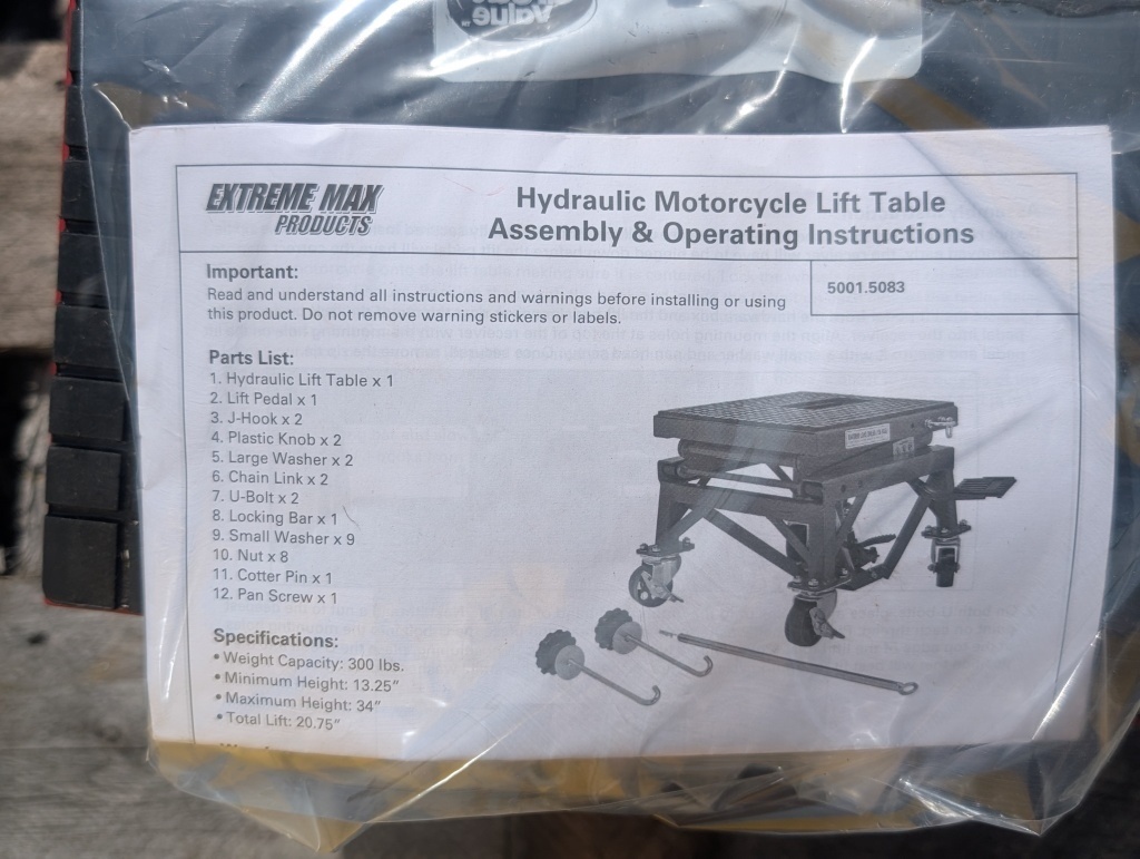 HYDRAULIC MOTORCYCLE LIFT TABLE MAX LOAD 300LBS