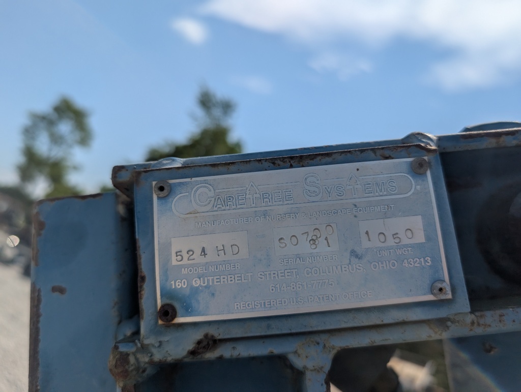 CARE TREE 524 HD 32INCH TREE SPADE WEIGHT 1050 LBS SERIAL NUMBER S070081