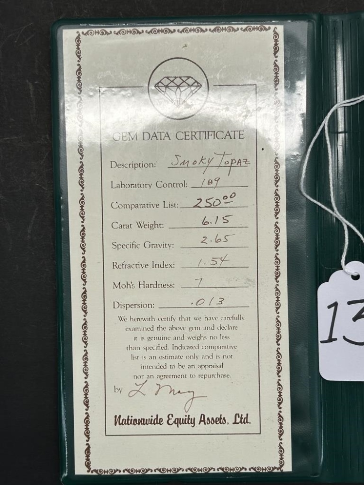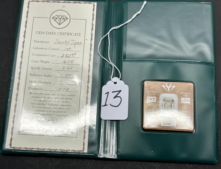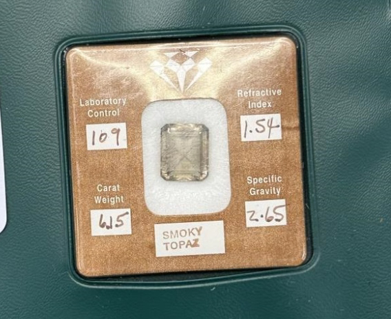 109 LABORATORY CONTROL, 1.54 REFRACTIVE INDEX, 6.15 CARAT WEIGHT, 2.65 SPECIFIC GRAVITY