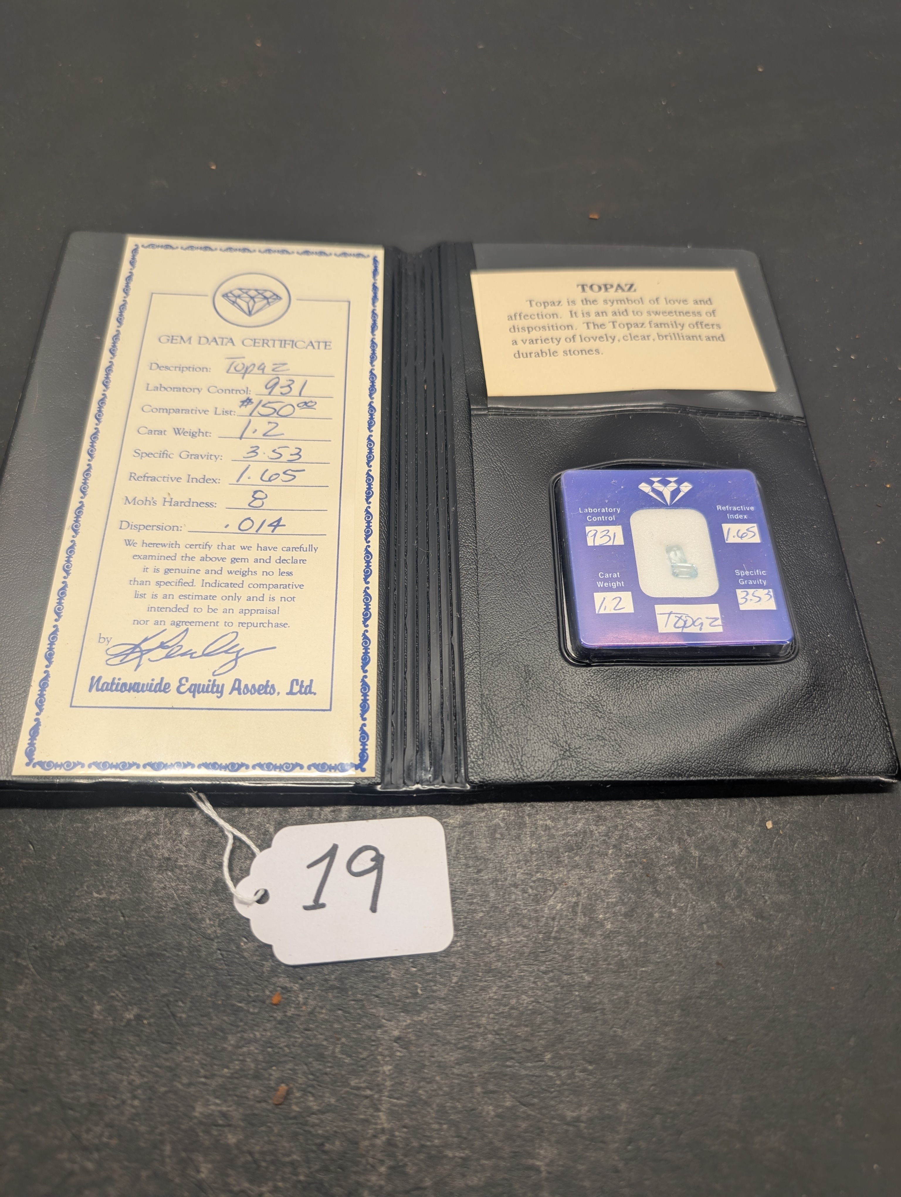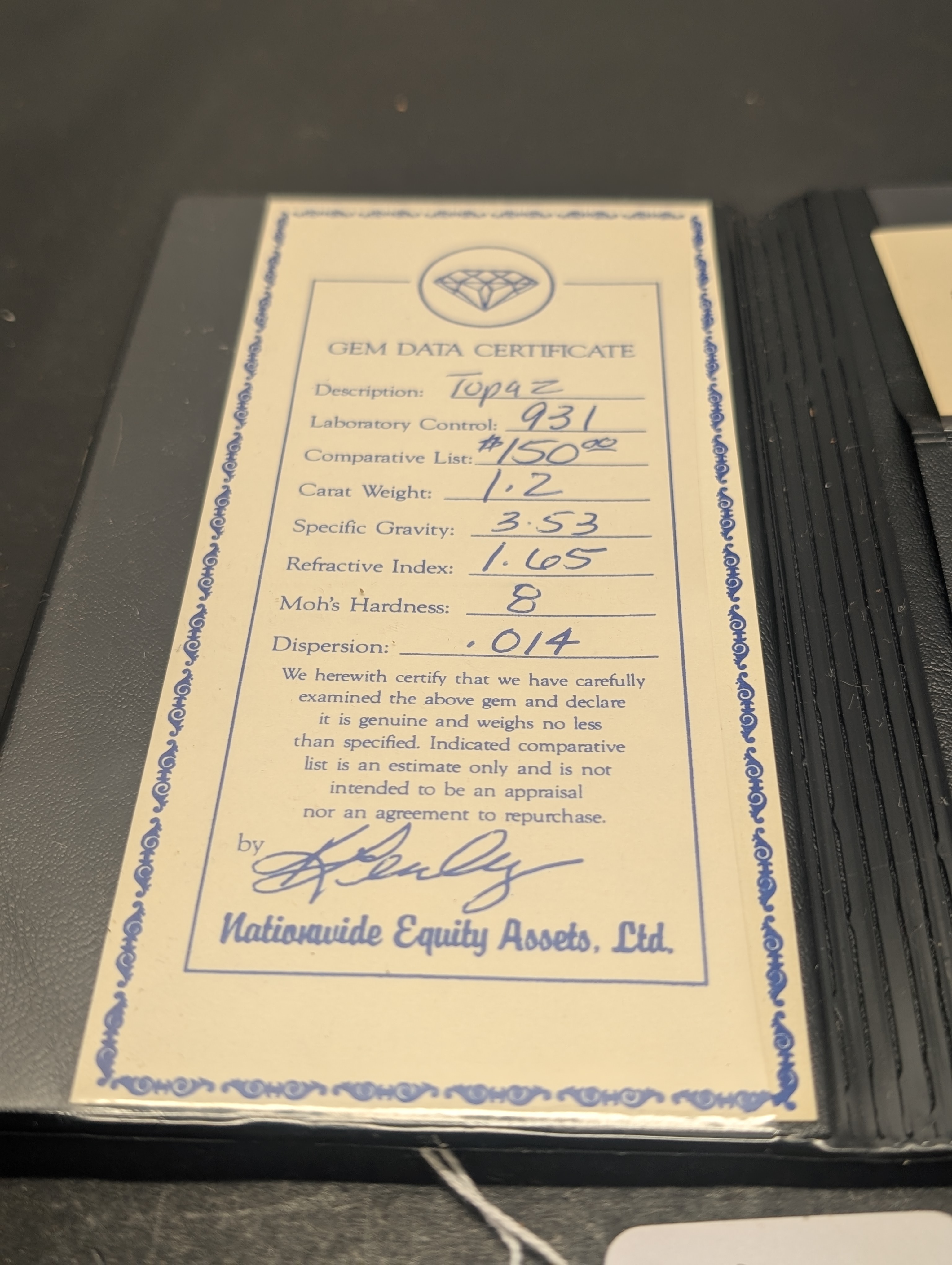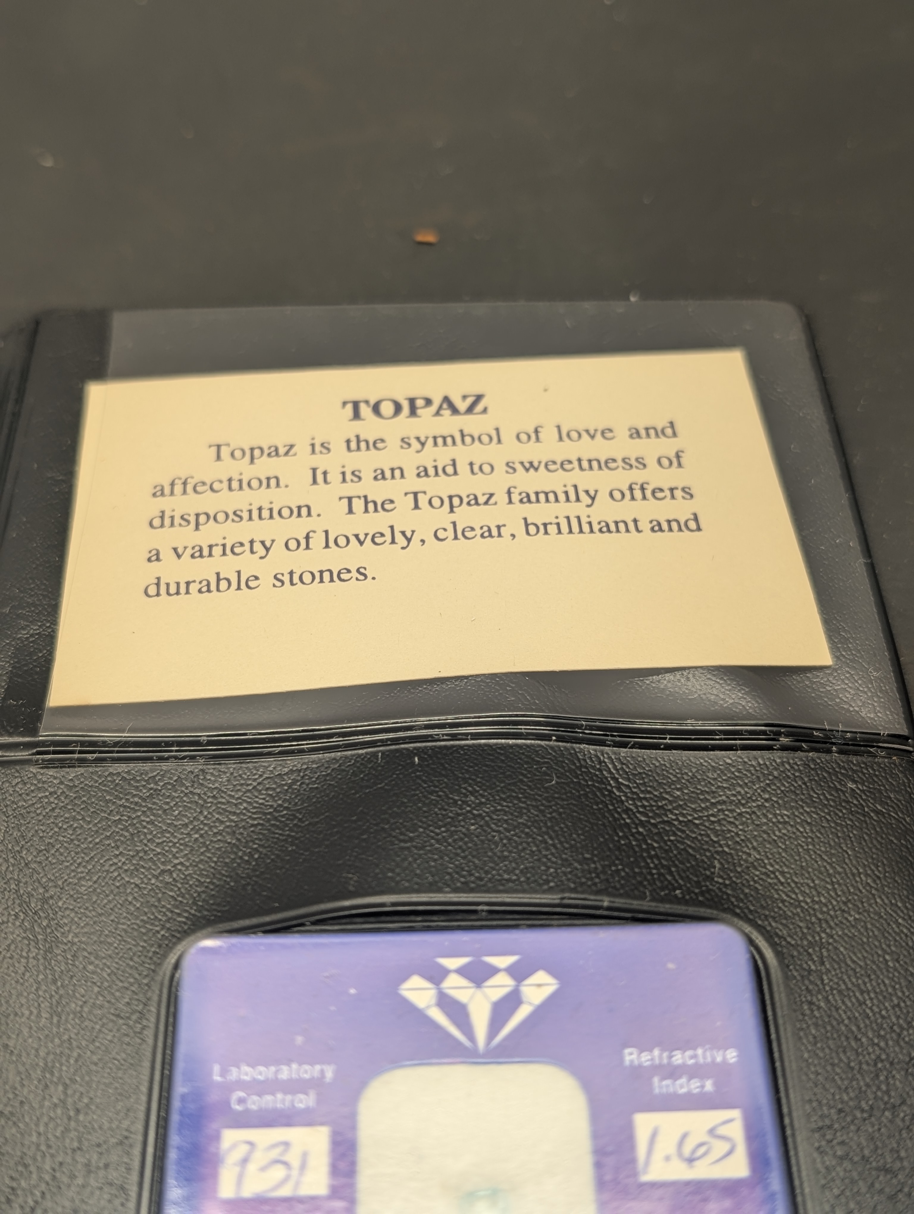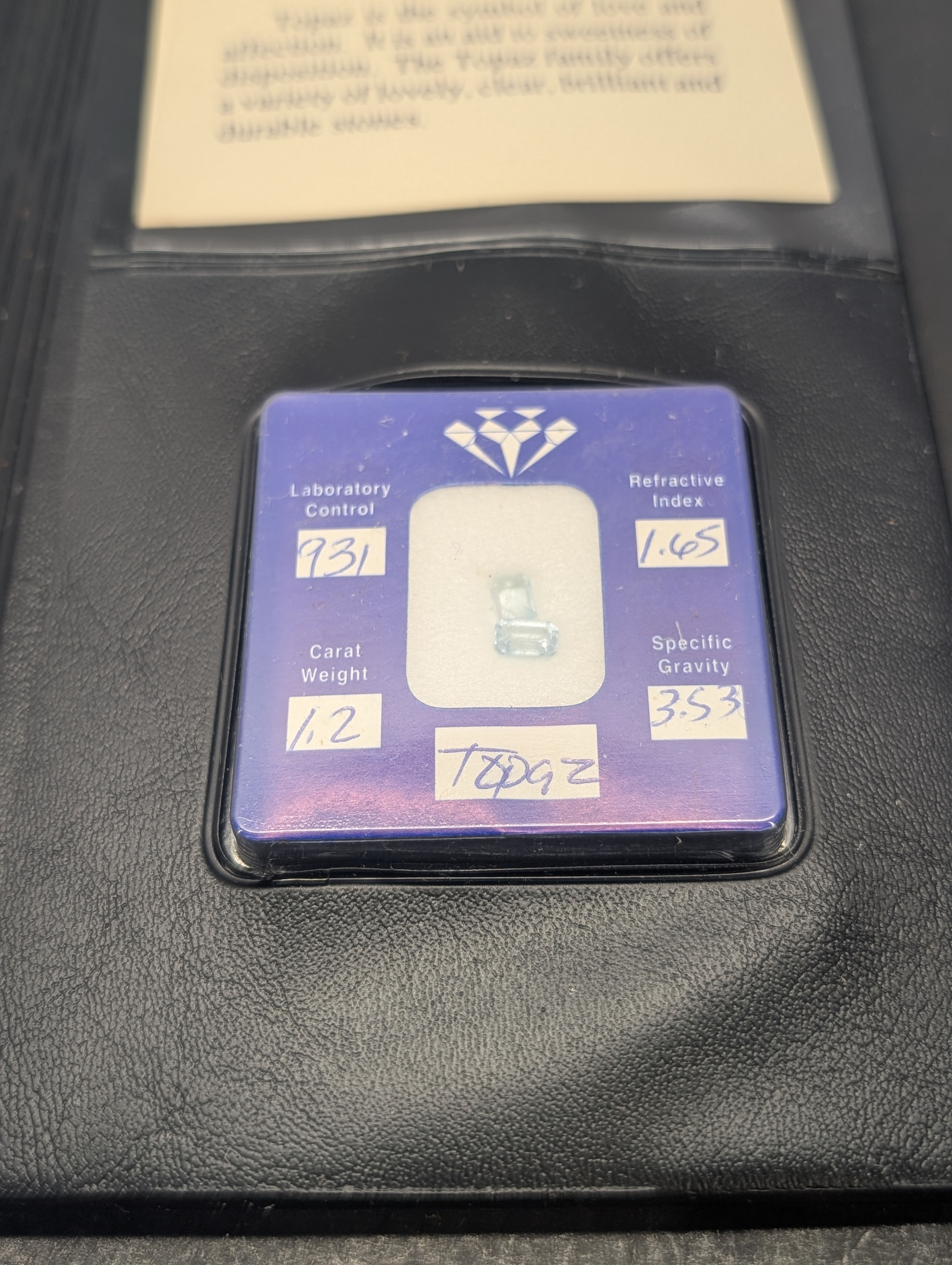 931 LABORATORY CONTROL, 1.2 CARAT WEIGHT, 1.65 REFRACTIVE INDEX, 3.53 SPECIFIC GRAVITY