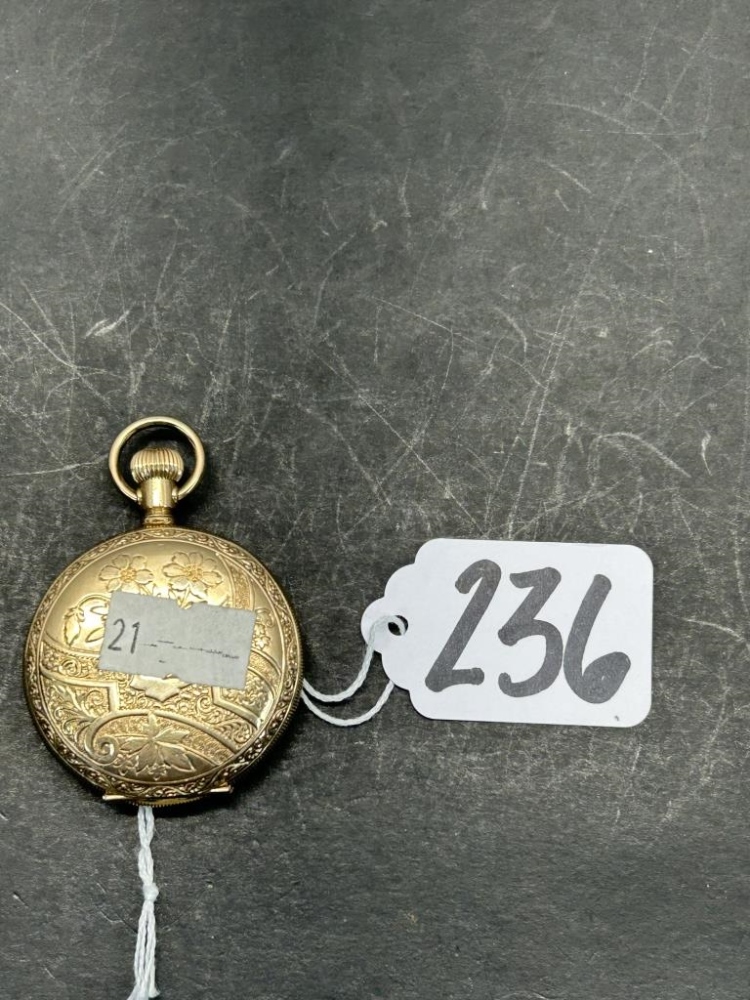 ANTIQUE POCKET WATCH WITH INTRICATELY ENGRAVED HUNTING CASE