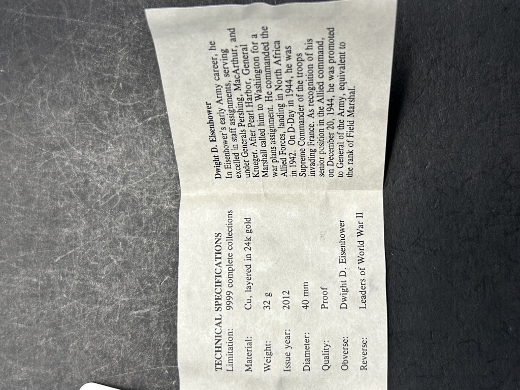 LEADERS OF WORLD WAR II, DWIGHT D. EISENHOWER 24K GOLD COIN WITH CERTIFICATE OF AUTHENTICITY