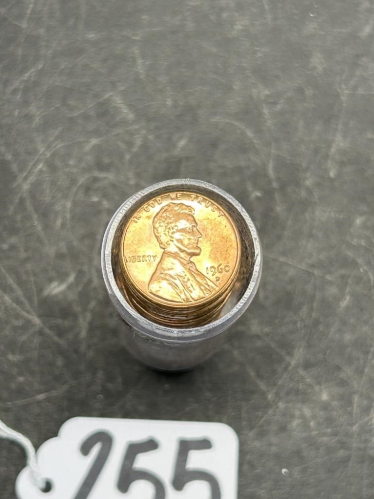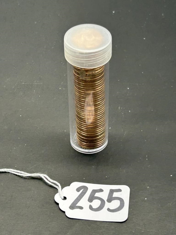 1960, 50 PENNIES IN PLASTIC TUBE