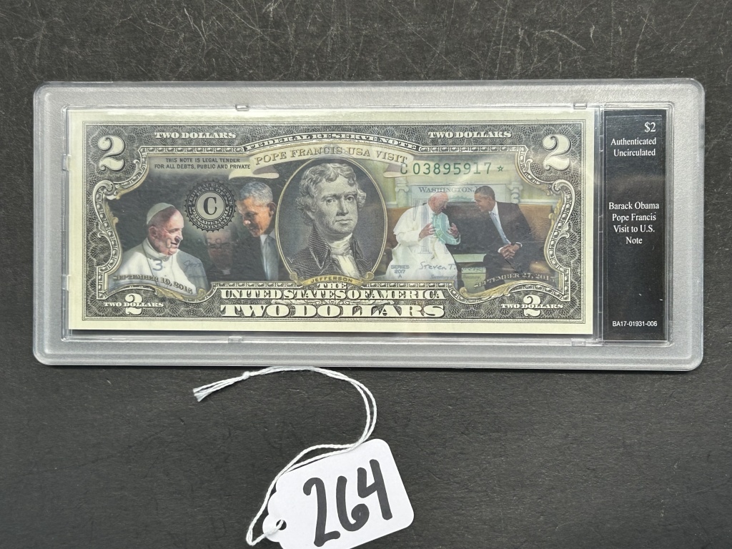 BARACK OBAMA POPE FRANCIS VISIT TO U.S. NOTE TWO DOLLAR BILL