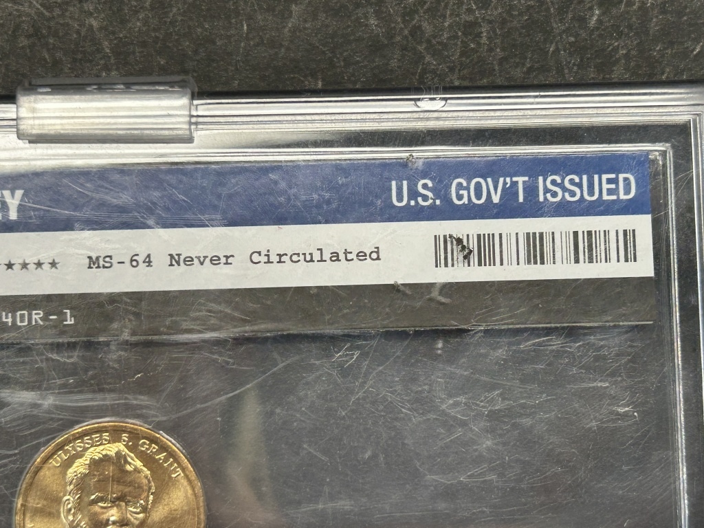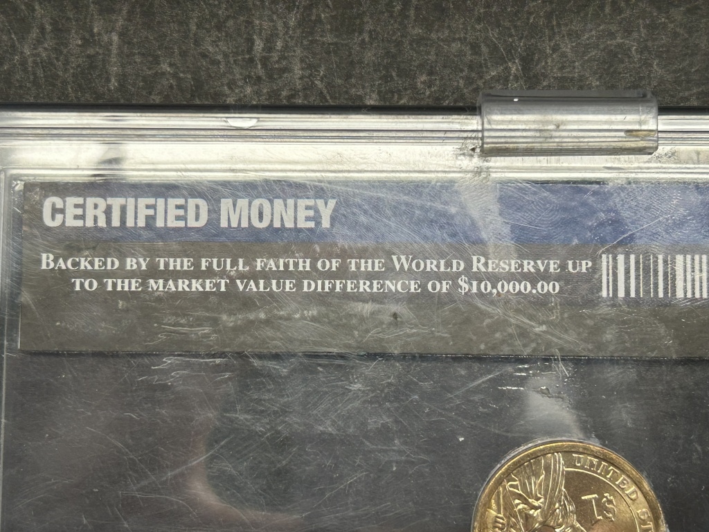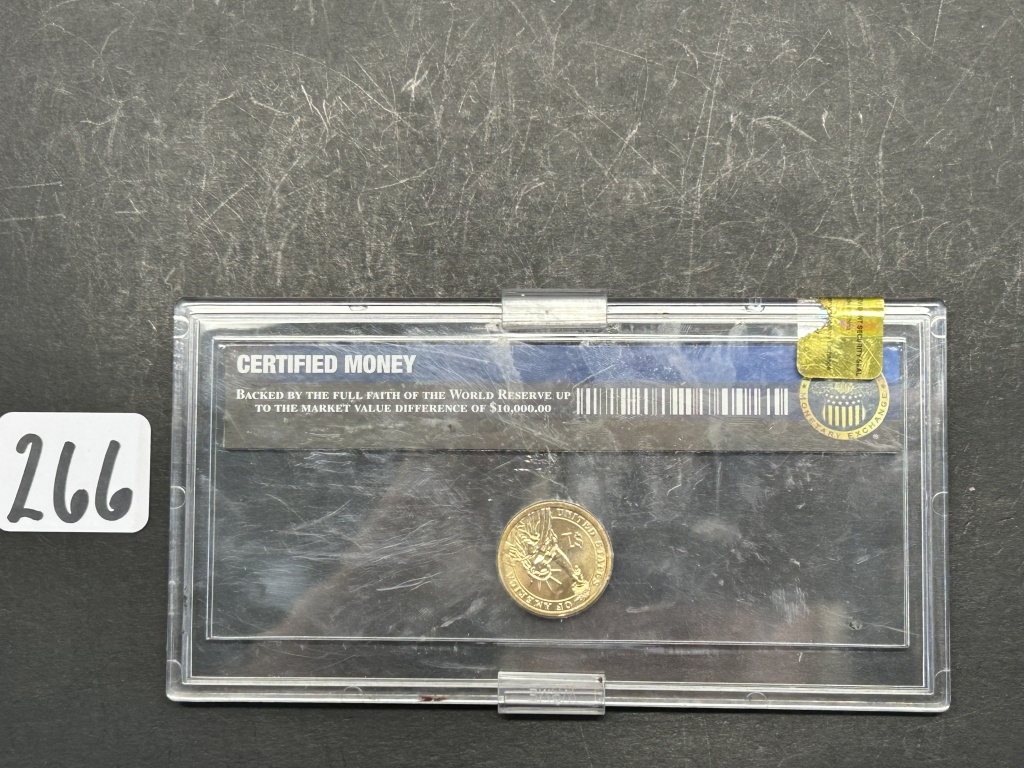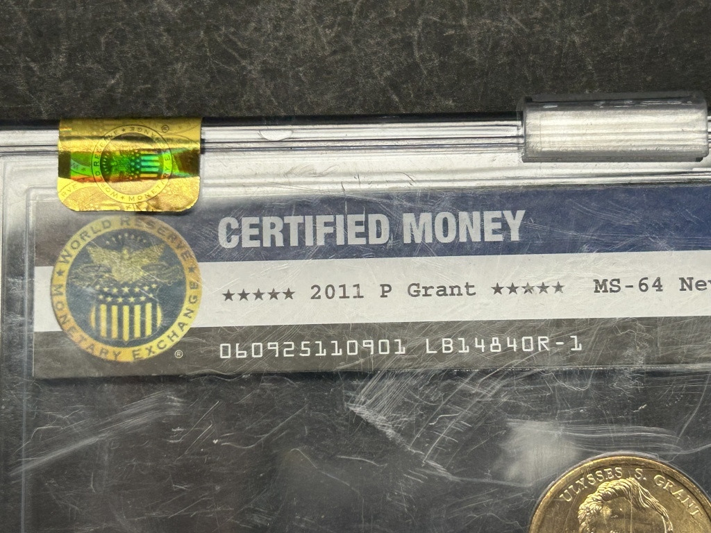 WORLD RESERVE MONETARY EXCHANGE CASE, ONE DOLLAR GOLD COIN WITH ULYSSES S. GRANT ENGRAVED 18TH PRESIDENT 1869-1877