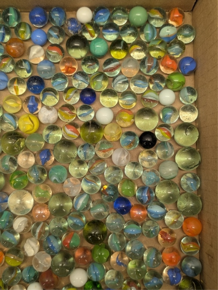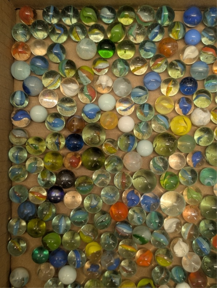 BIG GROUP OF MULTIPLE DIFFERENT COLOR AND SIZE MARBLES, GREEN, BLUE, YELLOW, WHITE AND MORE