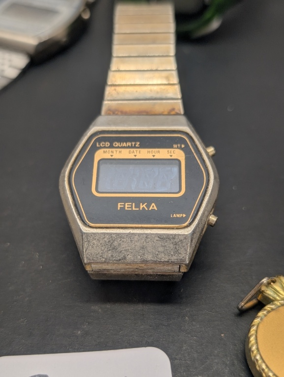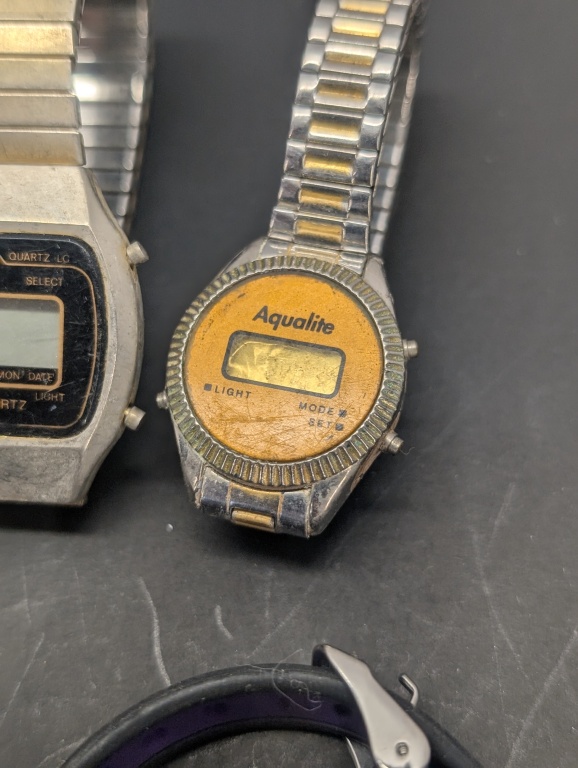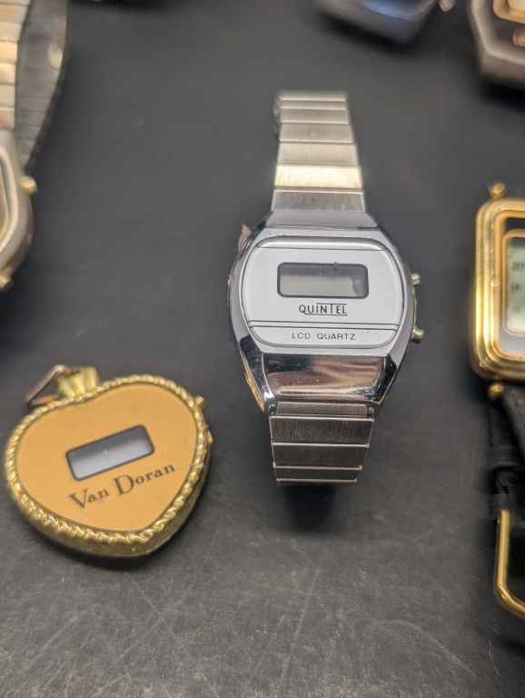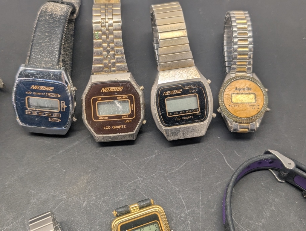 VARIOUS WATCHES, 3 NELSONIC LCD QUARTZ, AQUALITE, TEXAS INSTRUMENTS, QUINTEL, FELKA AND MORE