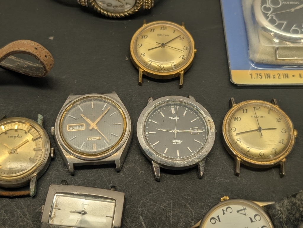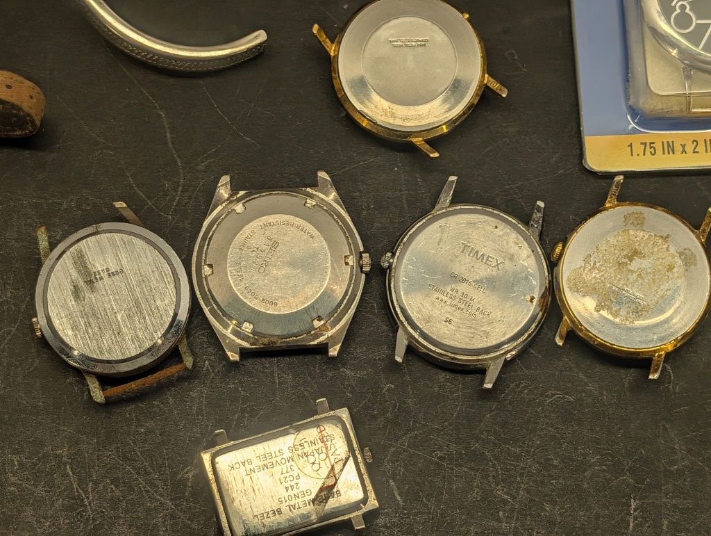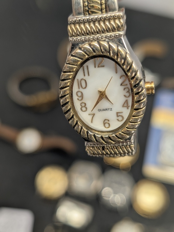 GROUP OF WATCHES SOME WITH WRIST BANDS AND SOME WITHOUT, TIMEX, COLDWATER CREEK, MEDANA, SEIKO, AND MORE DESIGNER BRANDS