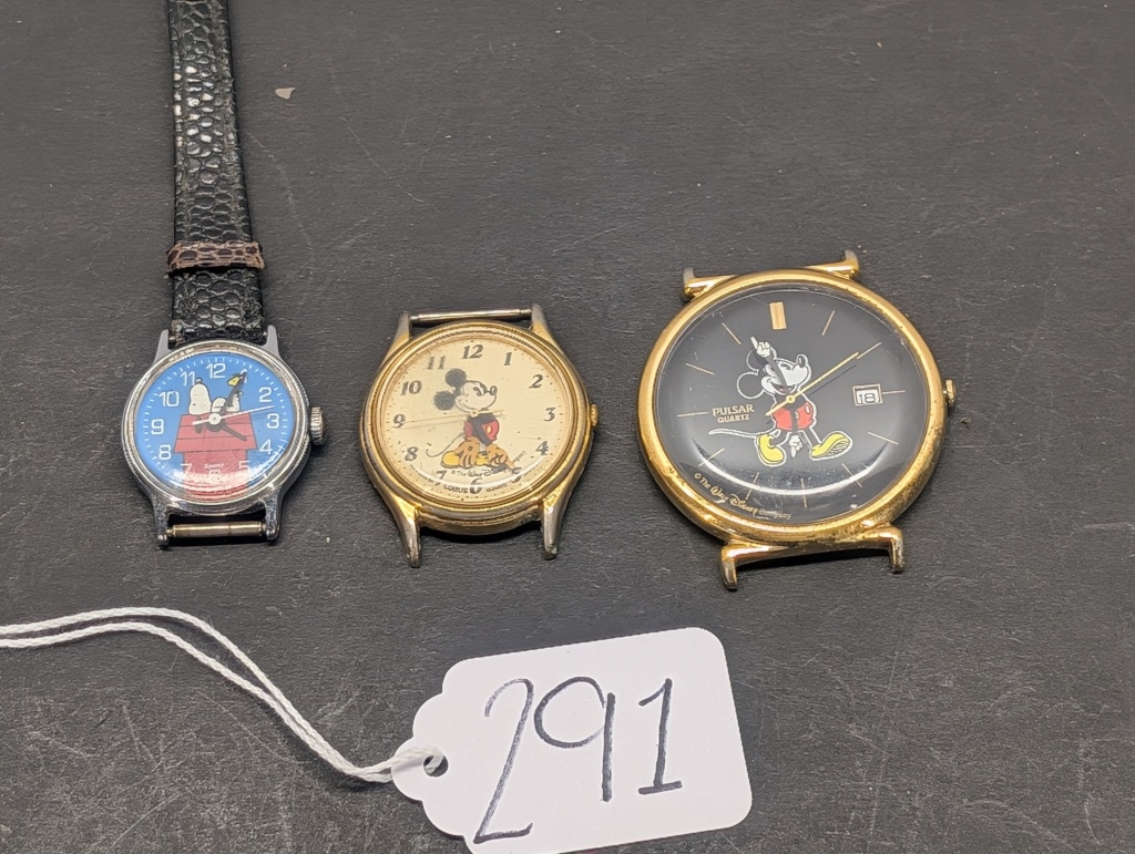 1 SNOOPY WATCH AND 2 WALT DISNEY MICKEY MOUSE WATCH NO WRIST BANDS