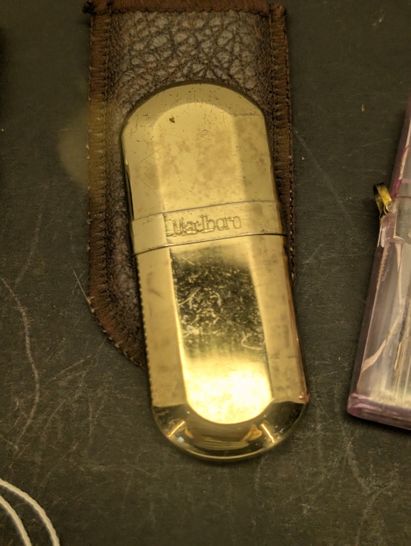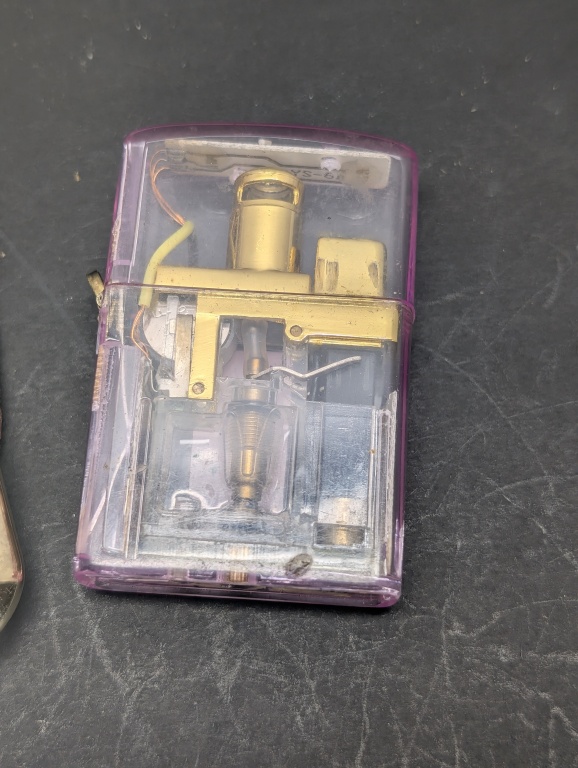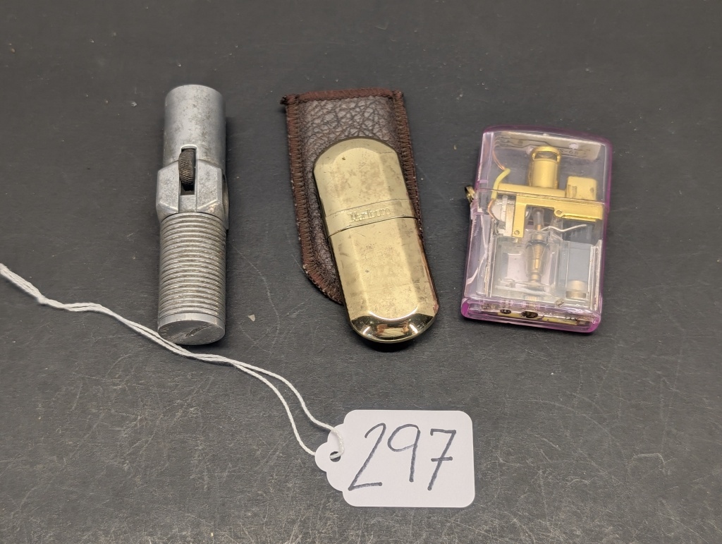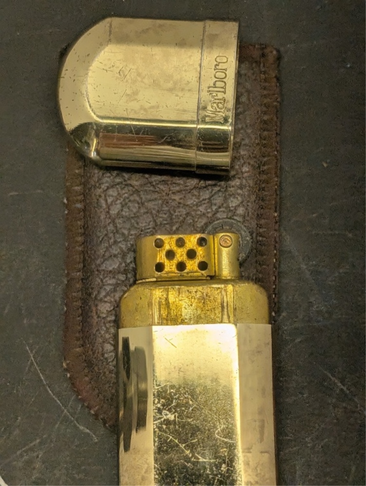 NOMROD PIPE LIGHTERS, BRASS MARLBORO LIGHTER, SEE THROUGH LIGHTERS