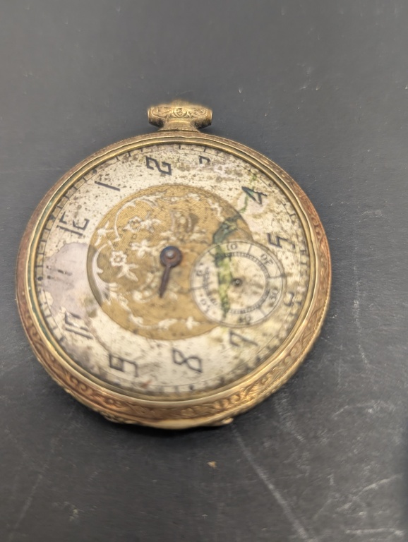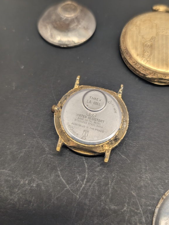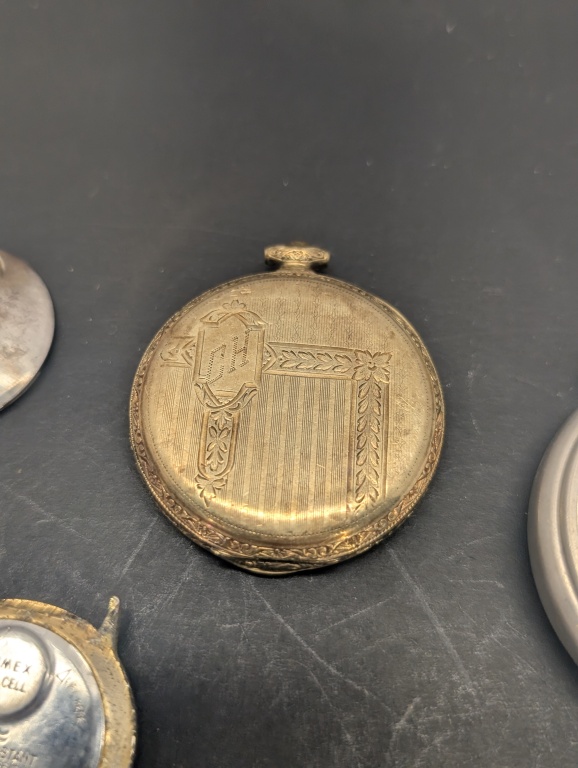 WESTCOX POCKET BEN WATCH, TIMEX WATCH, WATCH WITH ENGRAVED DESIGN WATCH CASE GOLF FILLED(NOT TESTED)