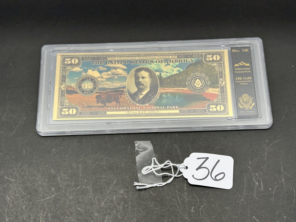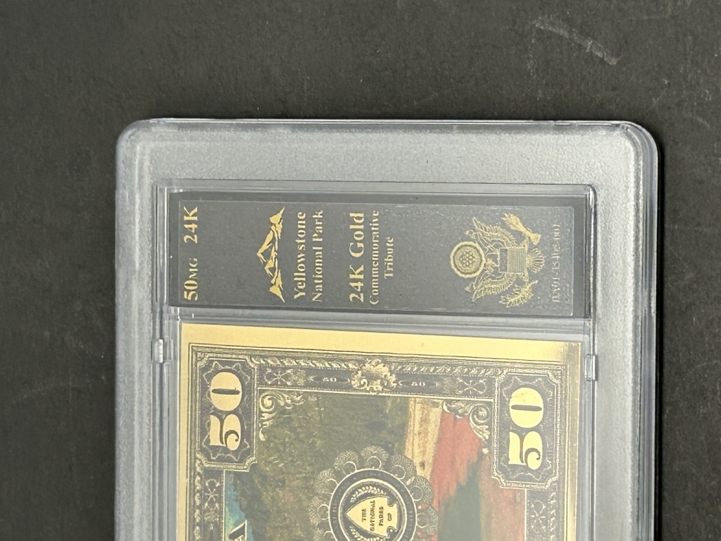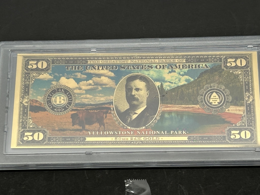 YELLOWSTONE, NATIONAL PARK 50 MG 24K GOLD COMMEMORATIVE TRIBUTE BILL