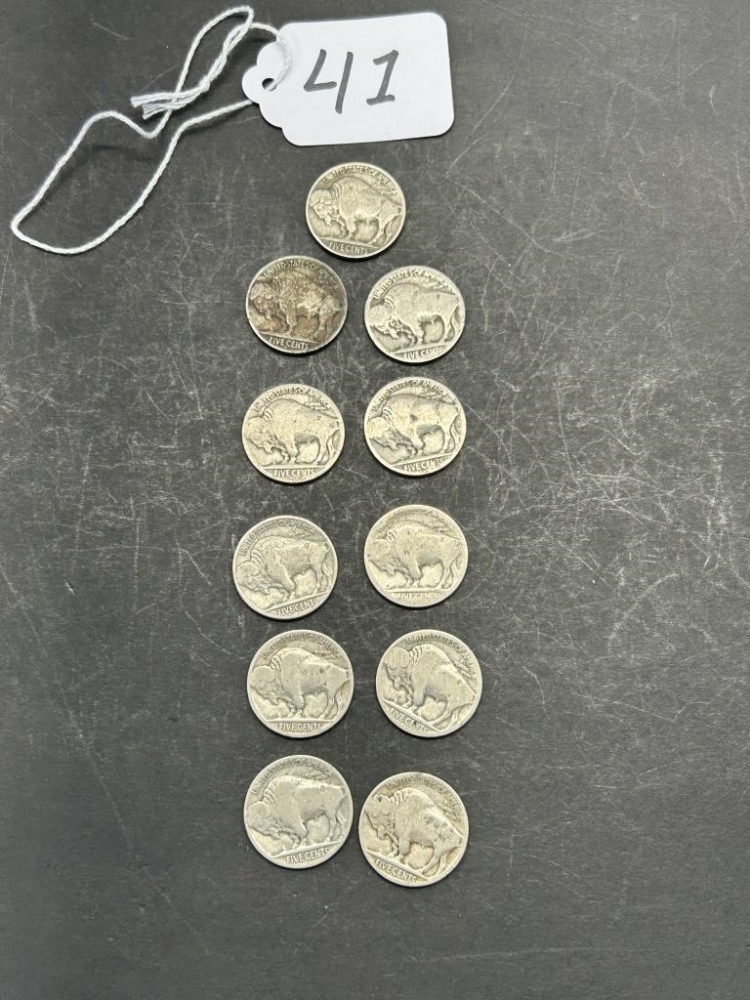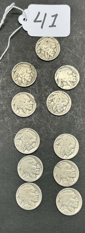 11 COINS, 1914 EARLIEST DATE, BUFFALO ON BACK, (HARD TO SEE YEAR)