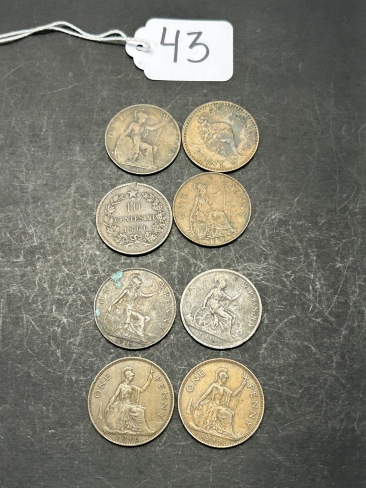 8 COINS, 1 CENT AND 10 CENT, RANGING FROM 1866-1946
