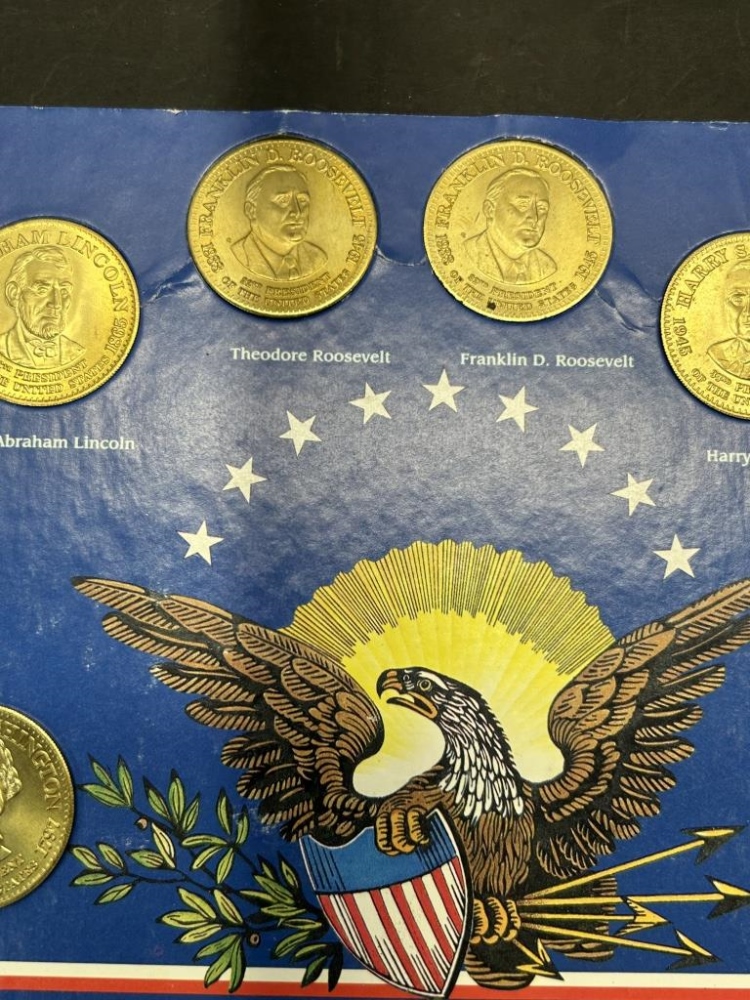 GEORGE WASHINGTON, THOMAS JEFFERSON, ABRAHAM LINCOLN, THEODORE ROOSEVELT, FRANKLIN D ROOSEVELT, HARRY S TRUMAN, DWIGHT D EISENHOWER, JOHN F KENNEDY