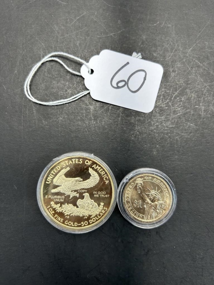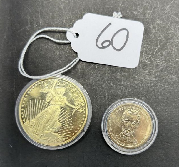 ABRAHAM LINCOLN 1 DOLLAR COIN, LIBERTY 1 OZ GOLD-50 DOLLARS