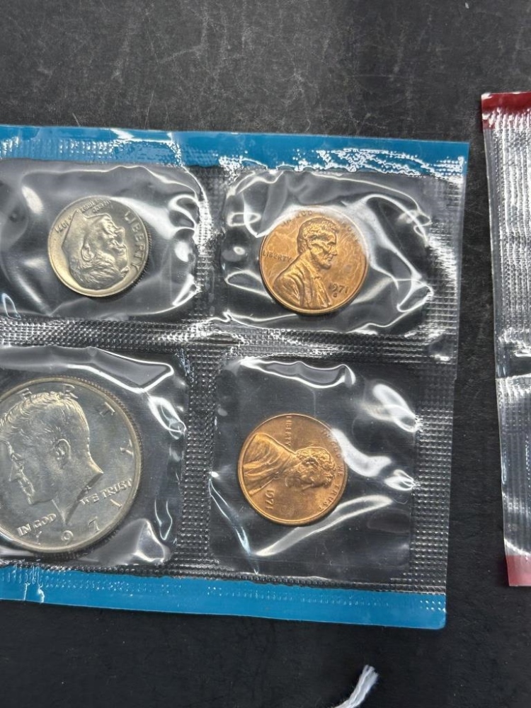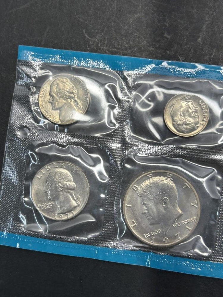 PENNIES, NICKLES, DIMES, QUARTERS, HALF DOLLARS ALL FROM 1971