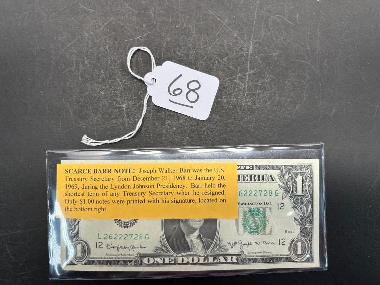 JOSEPH WALKER BARR ONE DOLLAR BILL