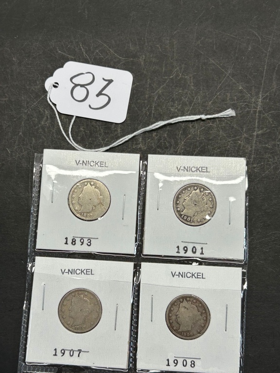 4 COINS RANGING FROM 1893-1908