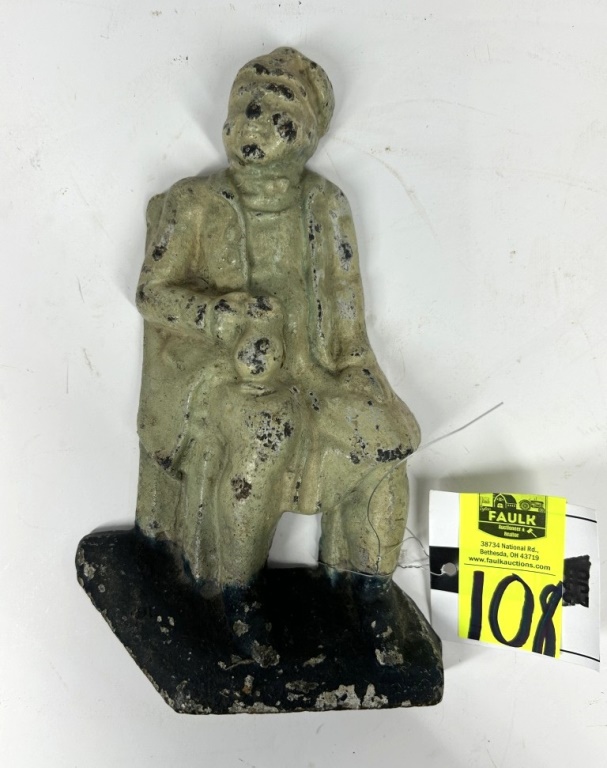 VINTAGE CAST IRON MAN SITTING DOORSTOP