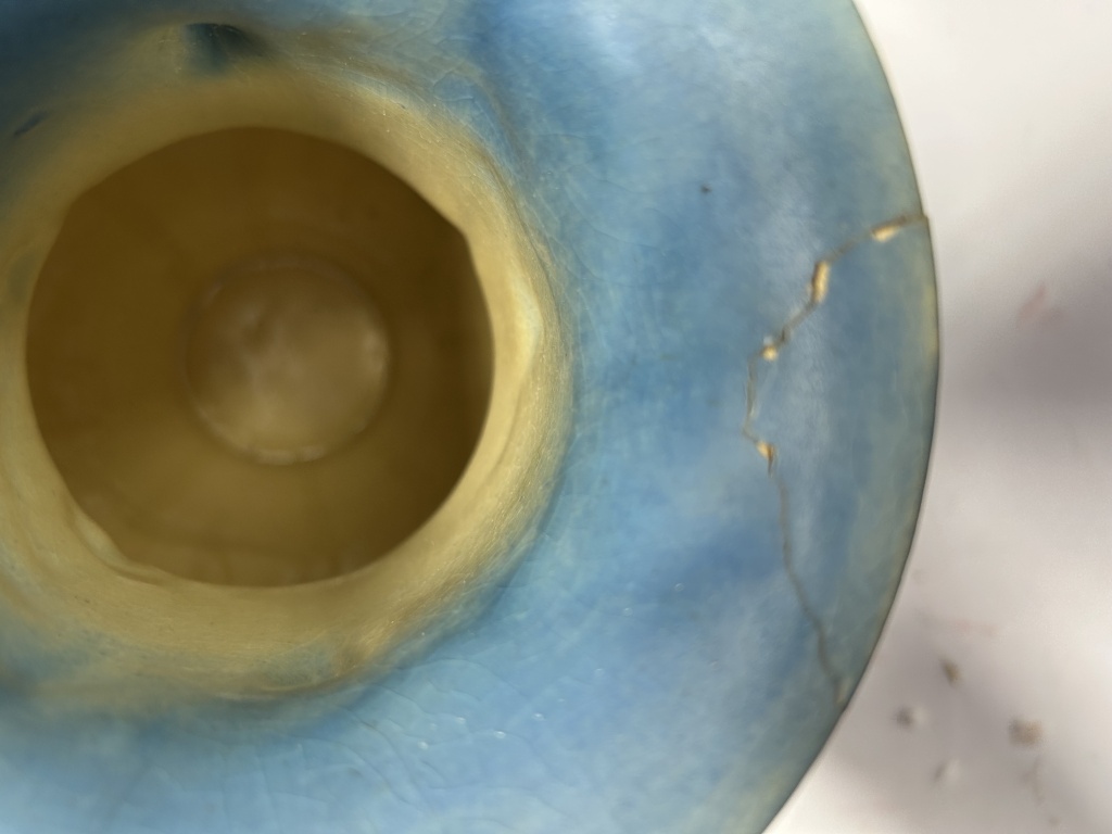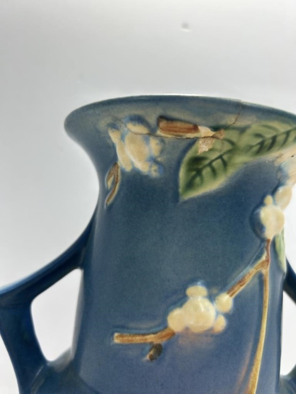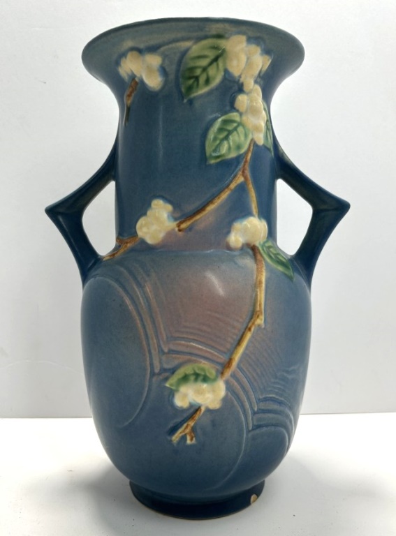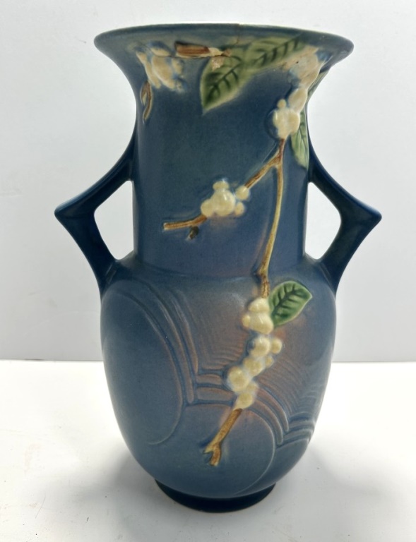 VINTAGE SNOWBERRY BLUE HANDLED VASE