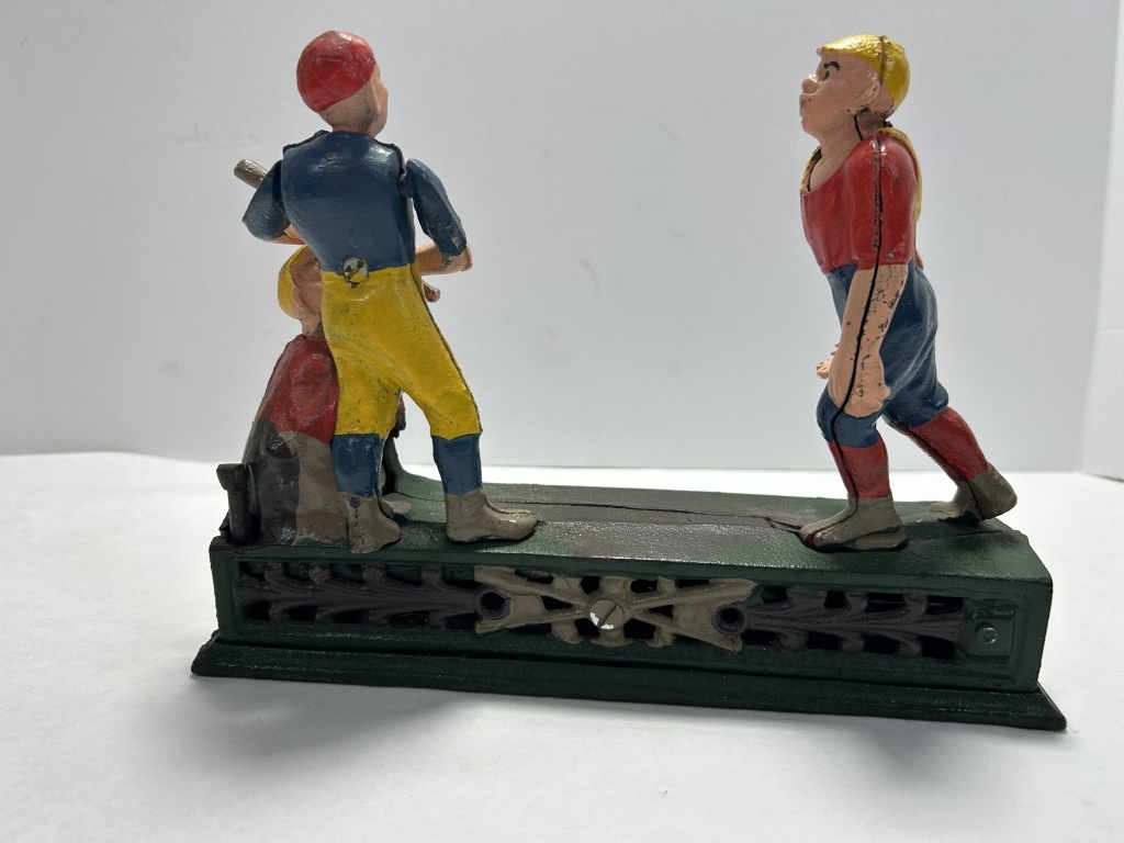 VINTAGE CAST IRON BASEBALL BANK MECHANICAL BANK