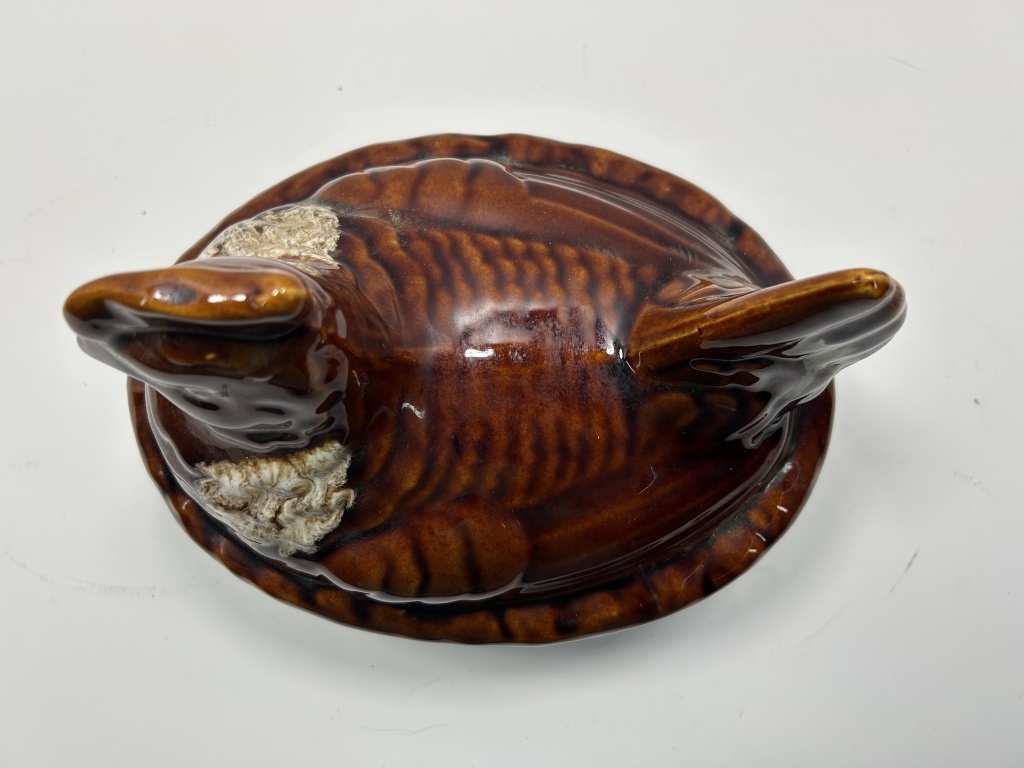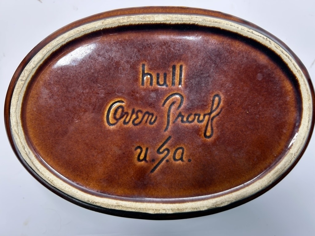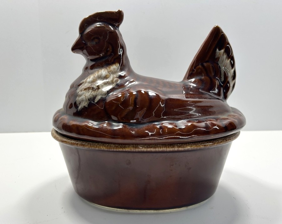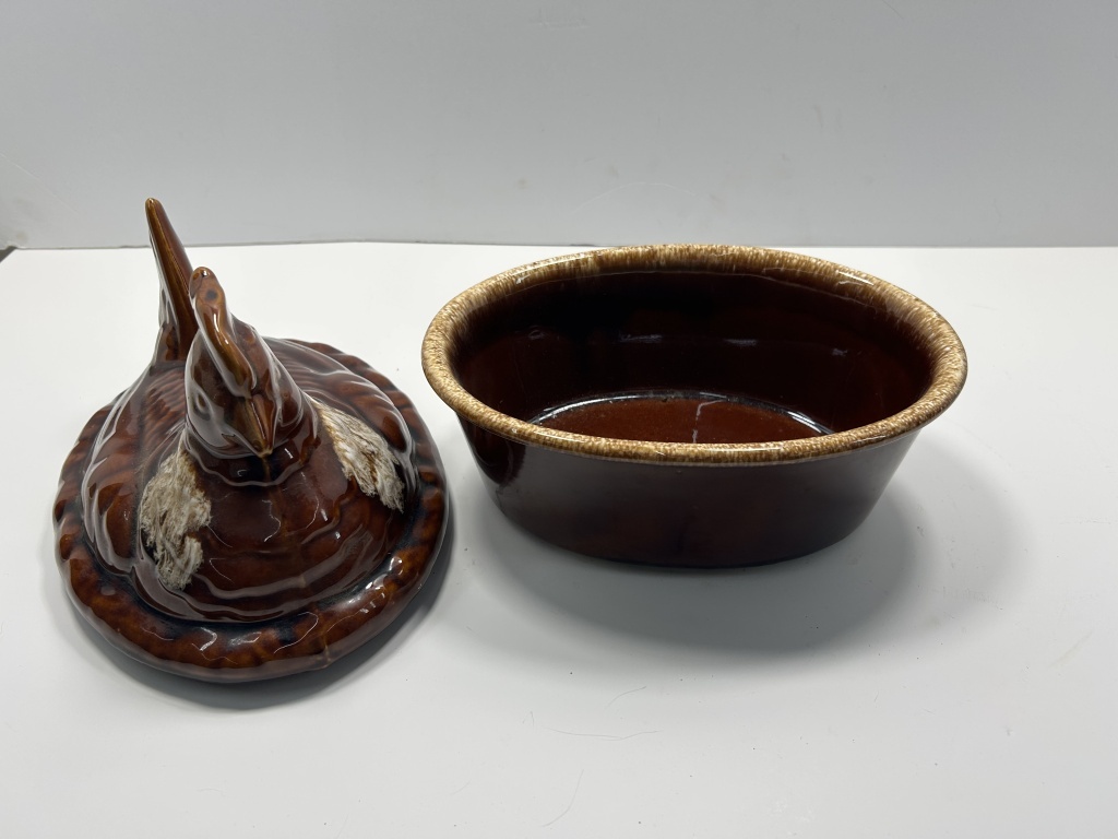 HULL POTTERY USA BROWN DRIP CHICKEN ON NEST CASSEROLE DISH