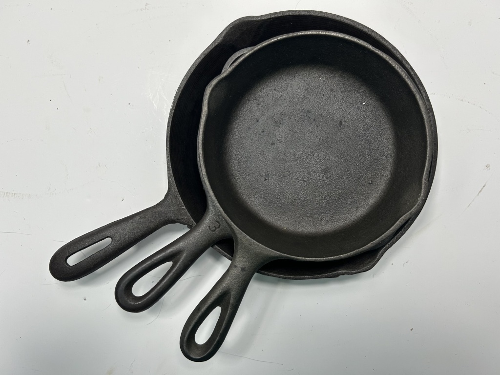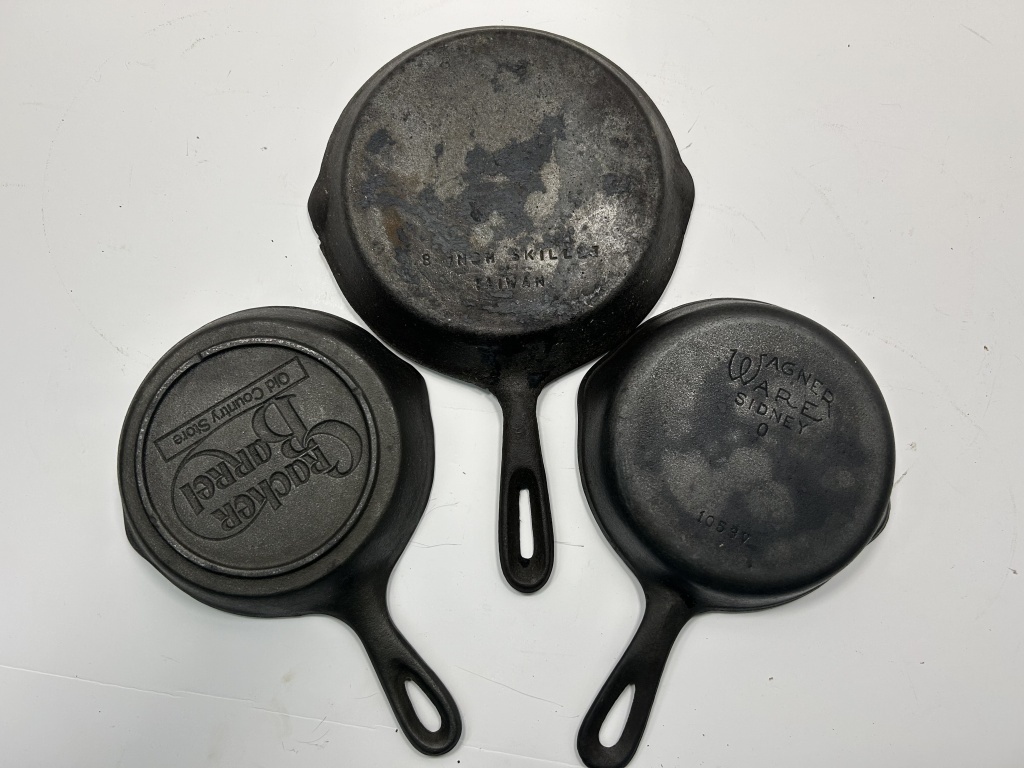 LOT FEATURES WAGNER WARE CAST IRON SKILLET, CRACKER BARREL SKILLET AND UNMARKED SKILLET