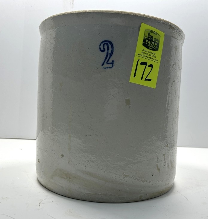 2 GALLON STONEWARE CROCK WITH HAIRLINE CRACK SHOWN IN PICTURE