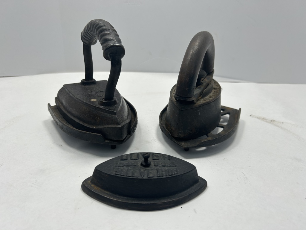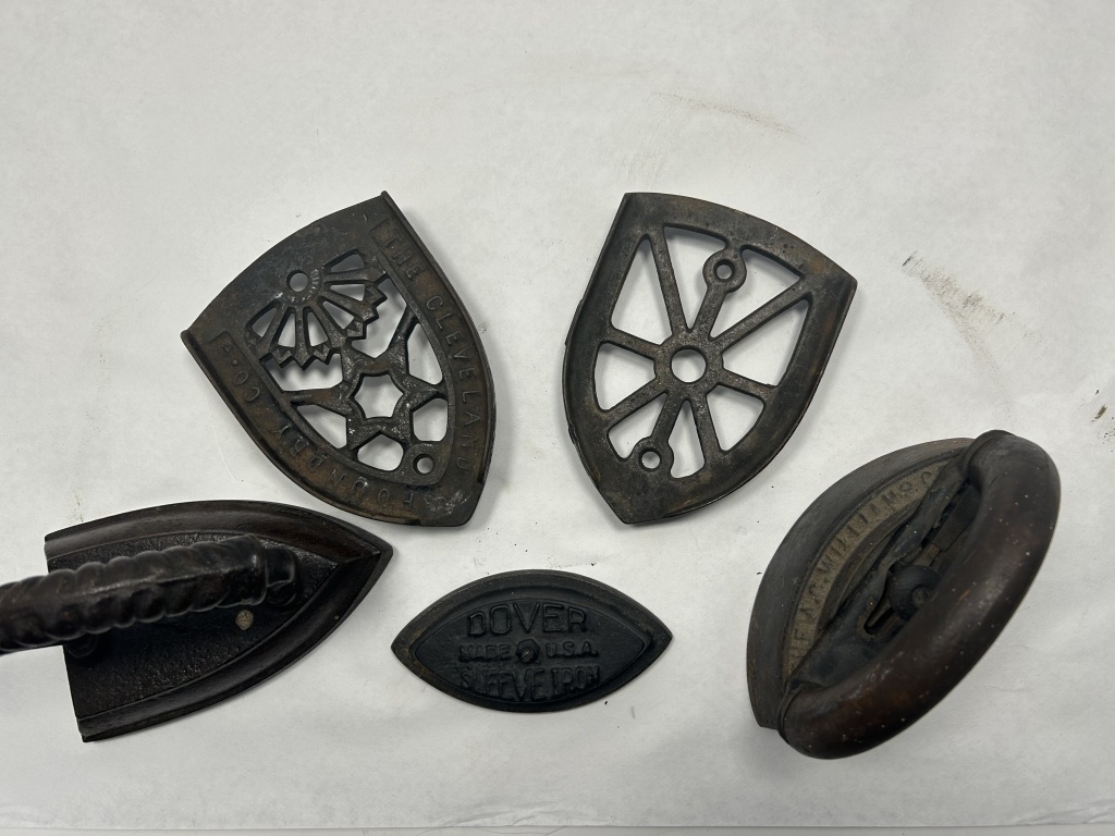 VINTAGE CAST IRON CLOTHES IRONS WITH TRIVETS