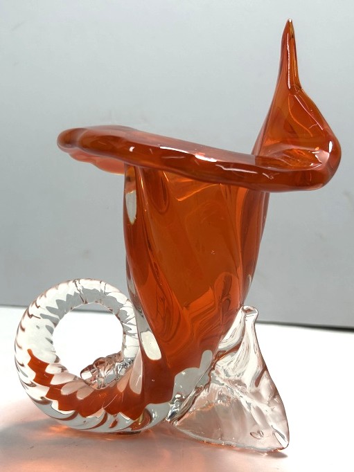 RARE MURANO ITALY 1950S ART GLASS HANDCRAFTED CORNUCOPIA VASE VINTAGE
