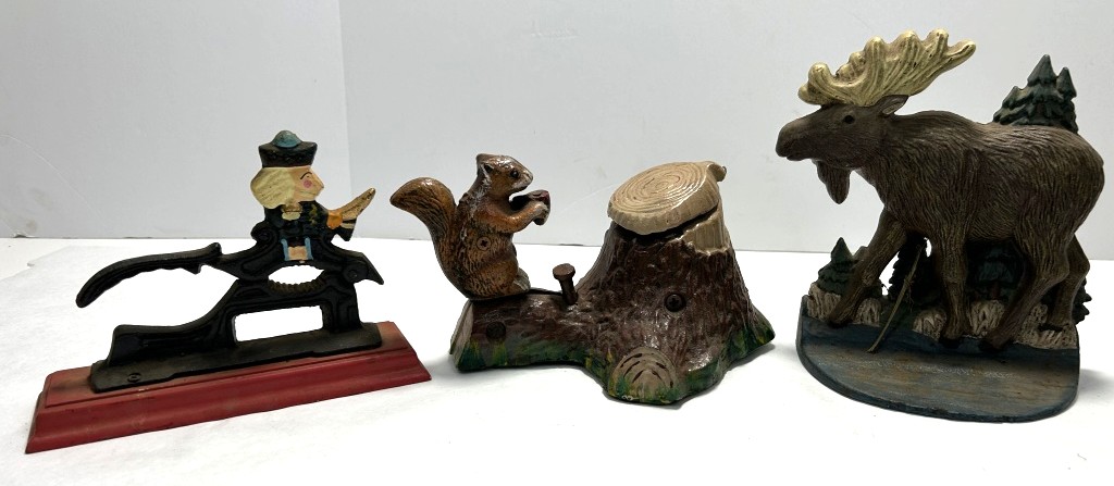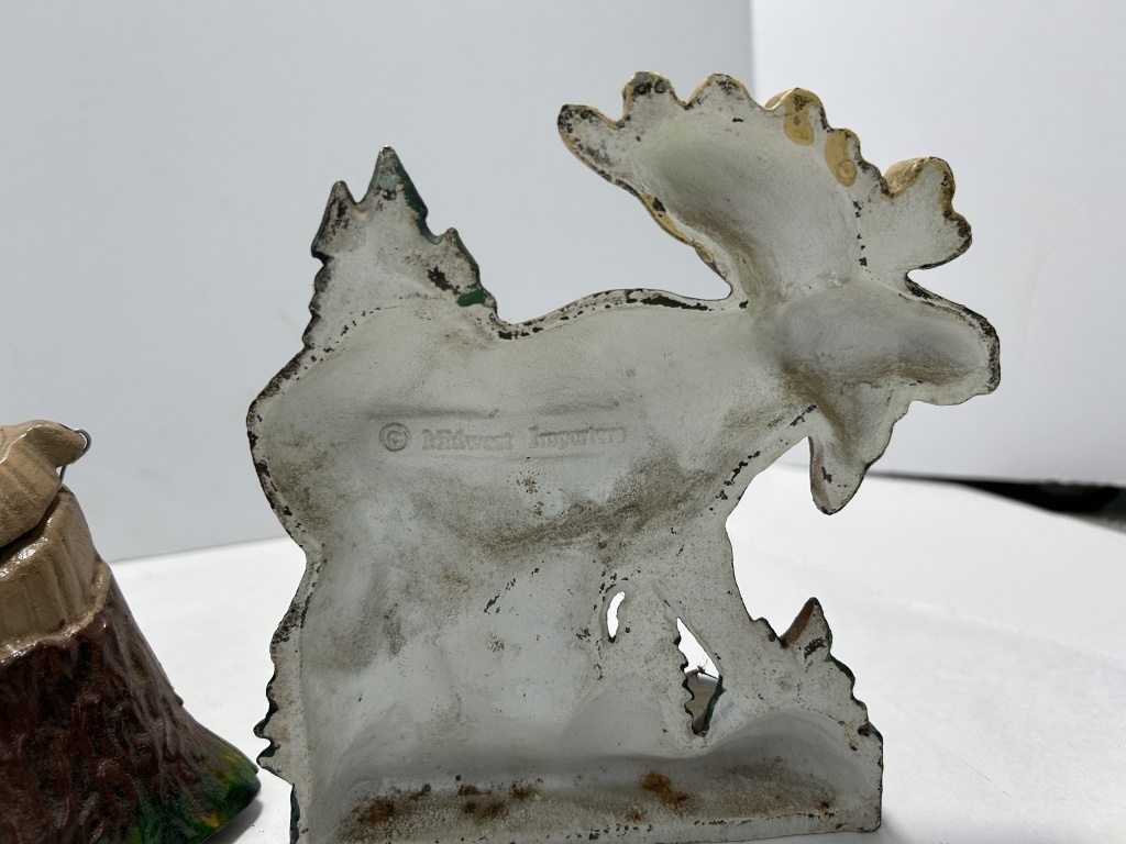 ONE MOOSE BOOKEND, MAN. AND SQUIRREL/NUT