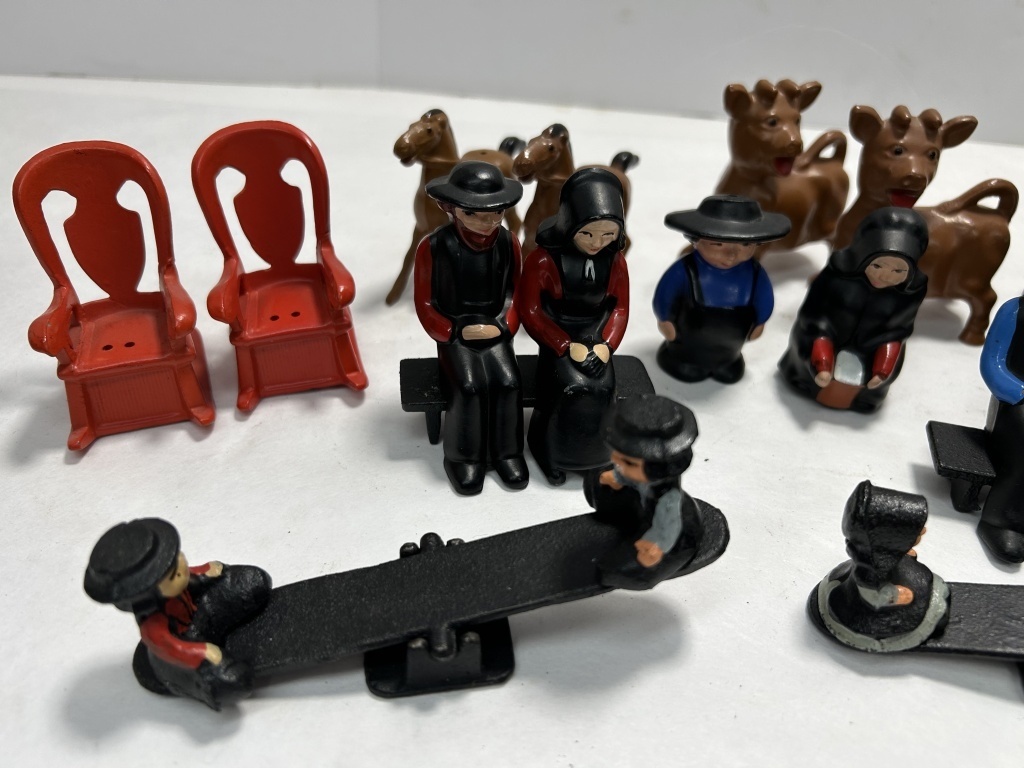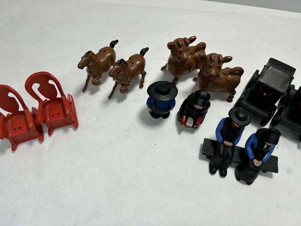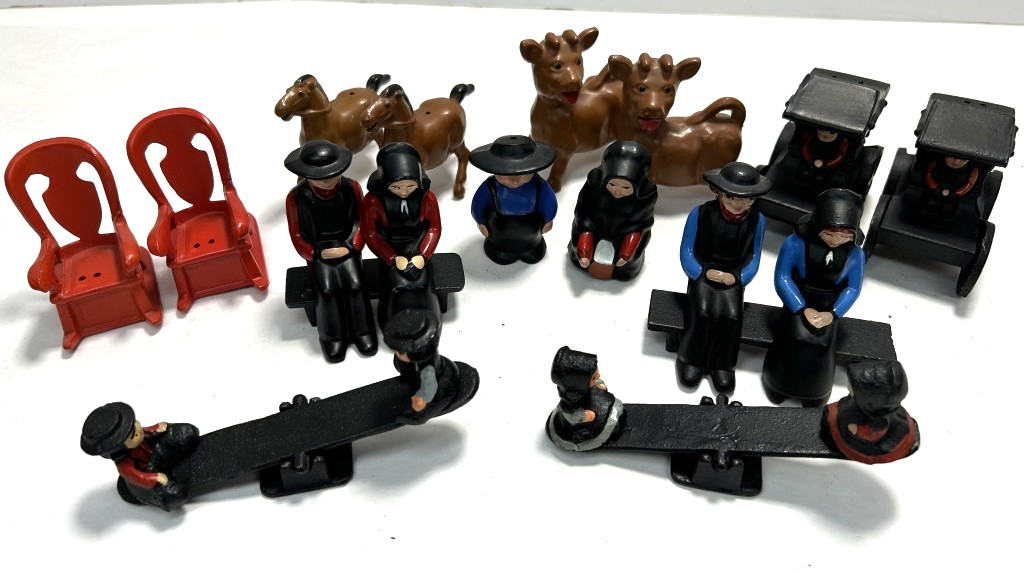 (5) SALT AND PEPPER SHAKERS, (3) COUPLES, (2) CHILDREN ON TEETER TOTTER