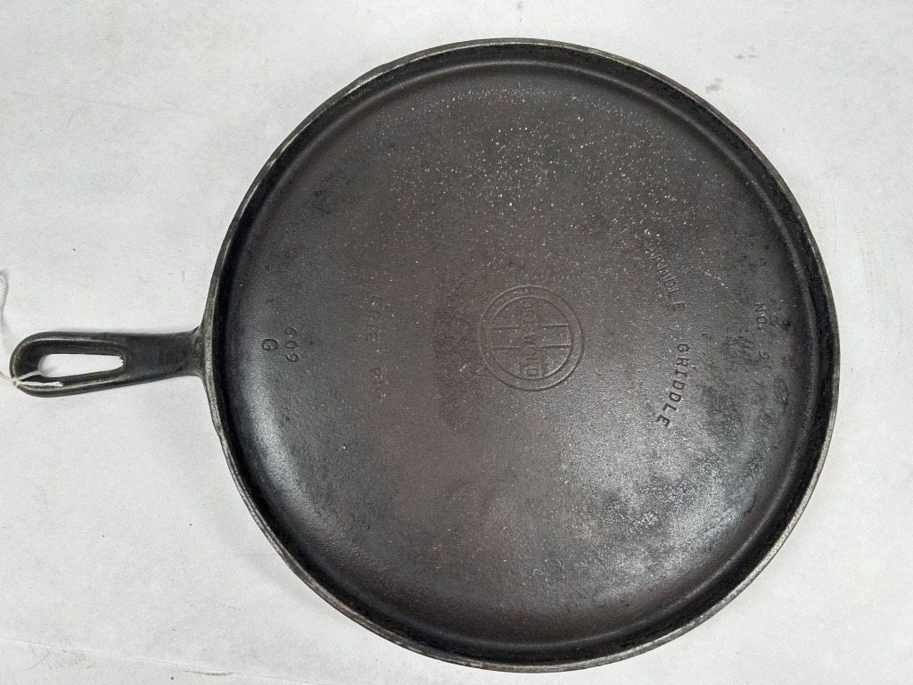 CAST IRON HANDLE GRIDDLE. MARKED ON BACK 609 ERIE PA