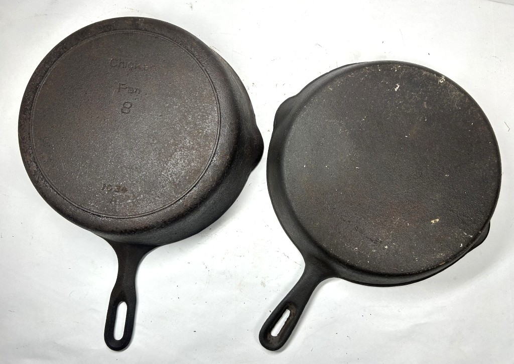 LOT INCLUDES #8 CHICKEN FRY PAN AND CAST IRON SKILLET