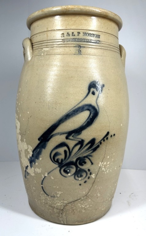 VINTAGE NORTON BENNINGTON STONEWARE CHURN HAIRLINE CRACK AS SHOWN IN PICTURE