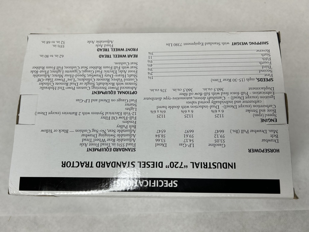 NIB 1/16 DIE CAST METAL TWO CYLINDER CLUB JOHN DEERE INDUSTRIAL 720 DIESEL STANDARD TRACTOR STOCK NO. 16178A