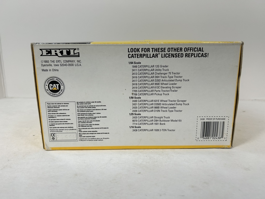 NIB 1/16 DIE CAST METAL CATERPILLAR 2 TON TRACK TYPE TRACTOR STOCK NO. 2544G
