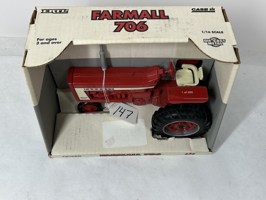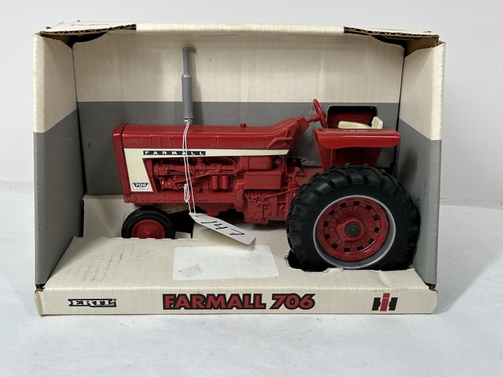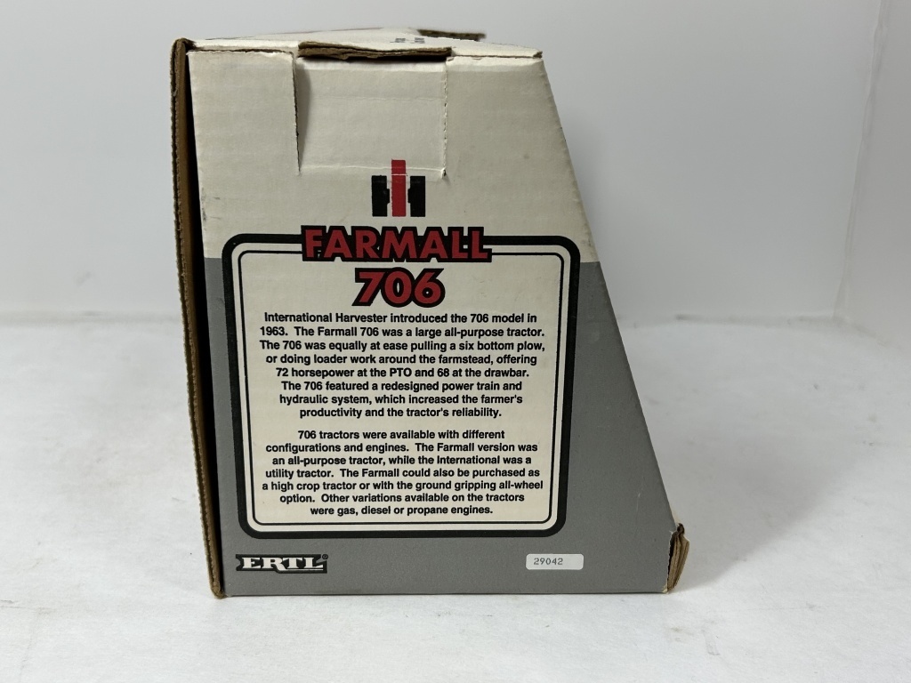 NIB 1/16 DIE CAST METAL FARMALL 706 WHITE STRIPE NARROW FRONT TRACTOR STOCK NO. 1127