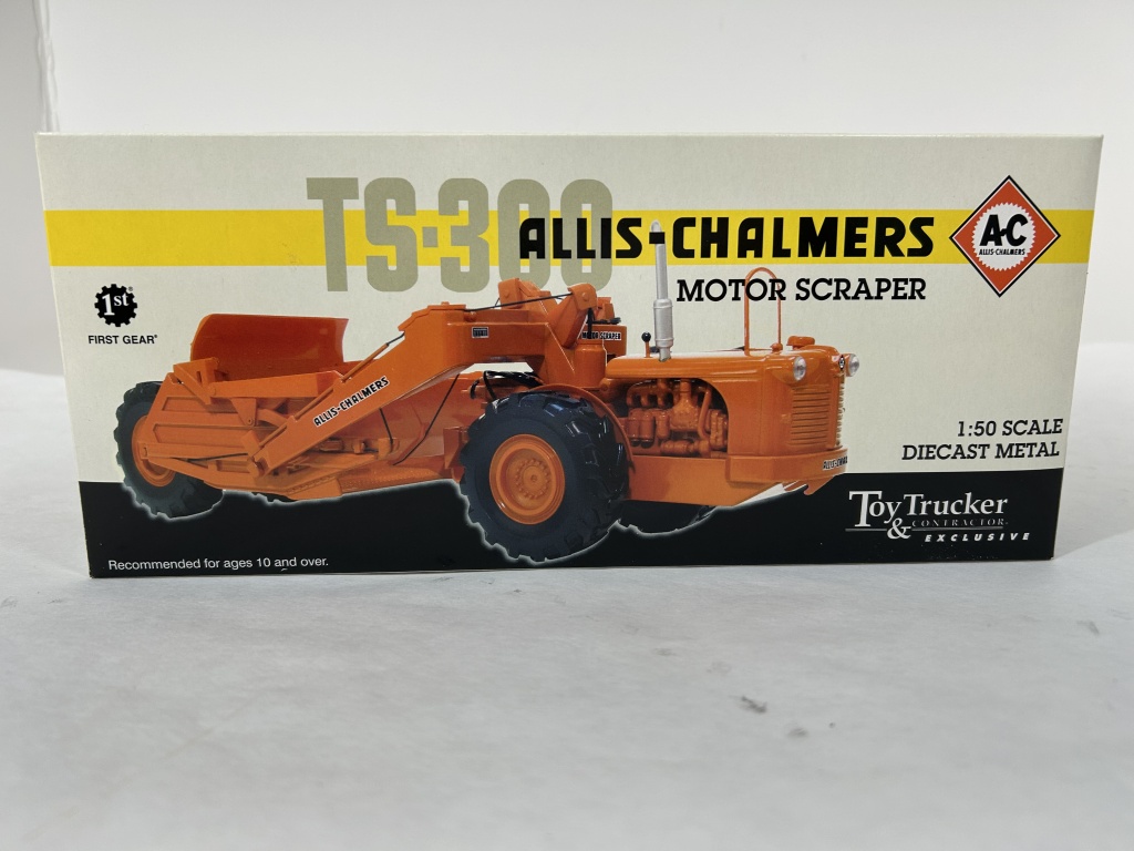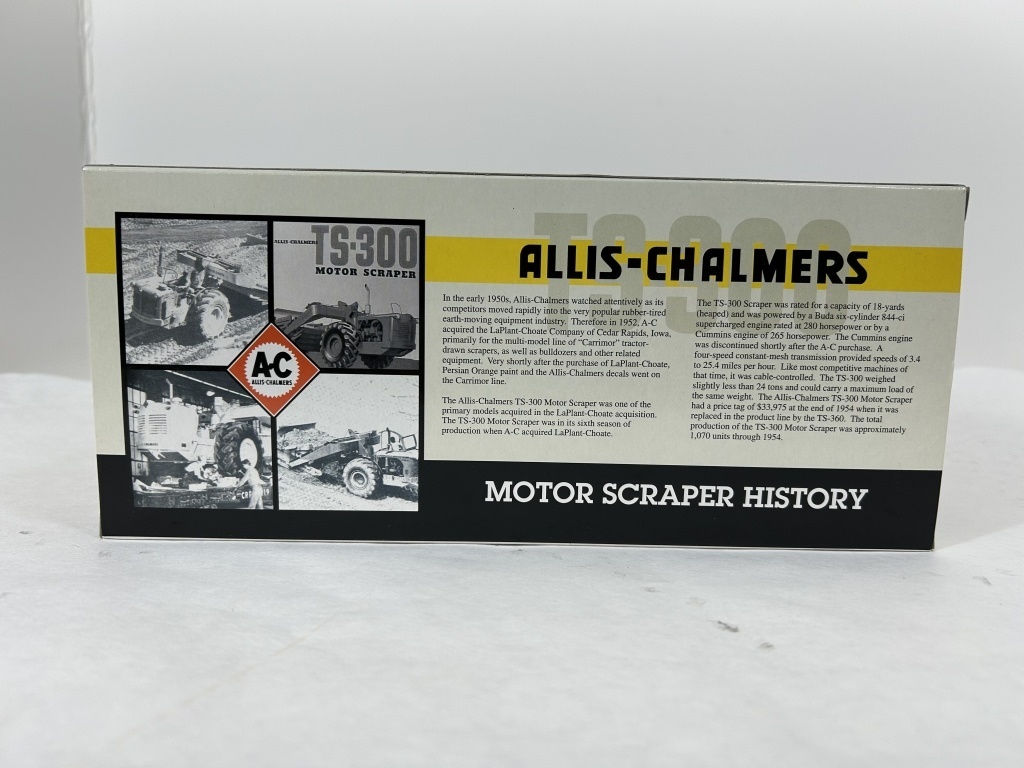 NIB 1/50 DIECAST METAL HIGHLY DETAILED ALLIS CHALMERS MOTOR SCRAPER TS 300 STOCK NO. 50N3099