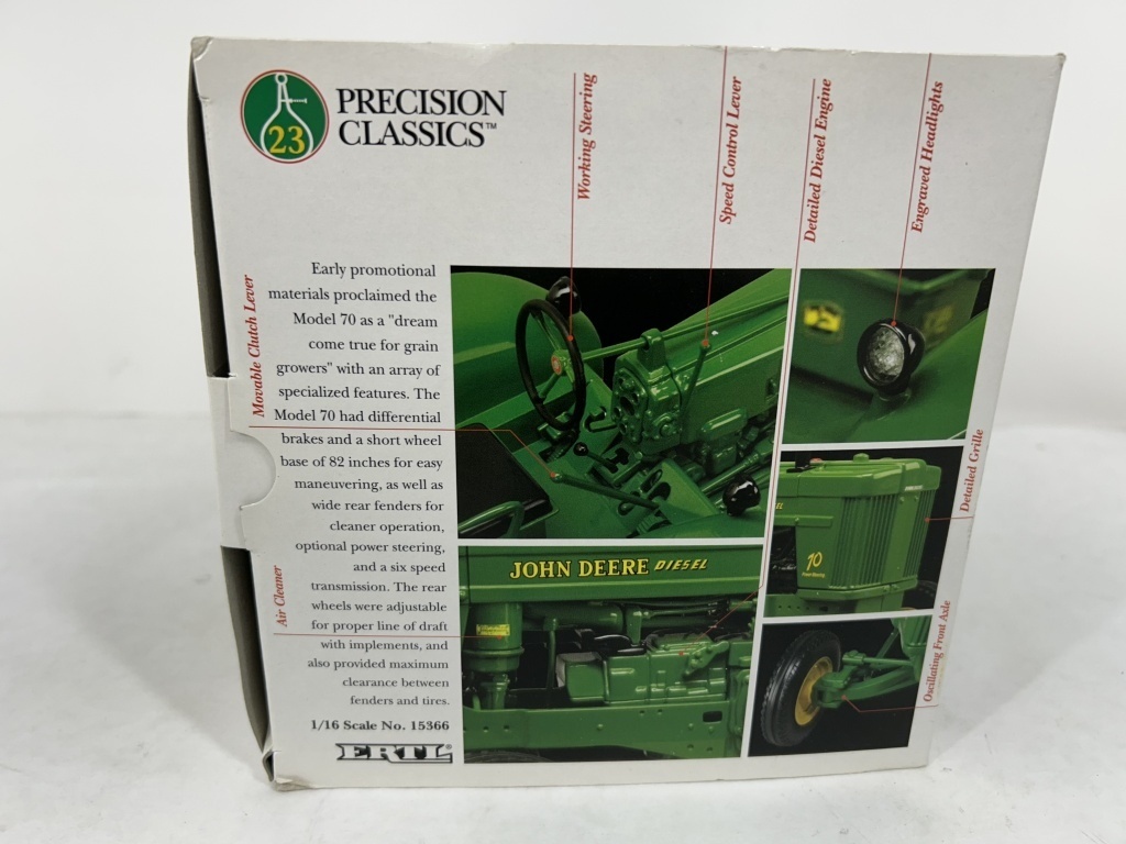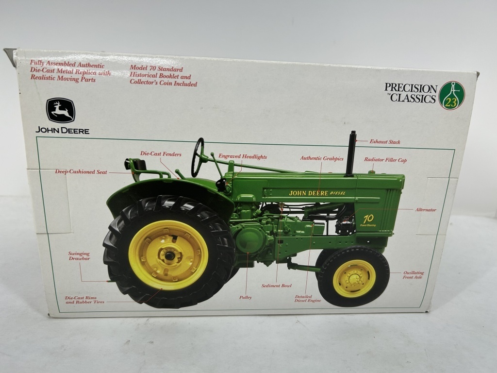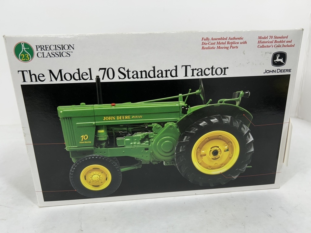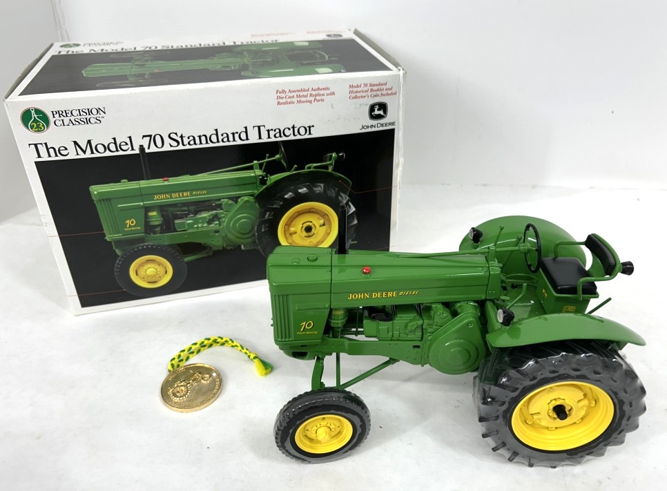 NIB DIE CAST METAL HIGHLY DETAILED PRECISION CLASSIC NO. 23 JOHN DEERE MODEL 70 STANDARD TRACTOR WITH GOLDEN TOKEN