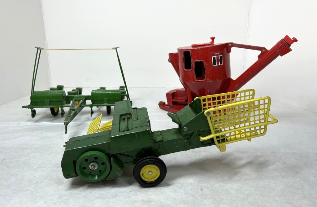 ERTL 1/16 DIE CAST INTERNATIONAL HARVESTER FEED GRINDER MIXER MILL, JOHN DEERE DIE CAST SQUARE BALER, JOHN DEERE 4-ROW PLANTER