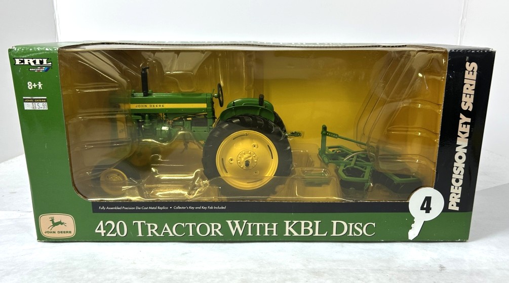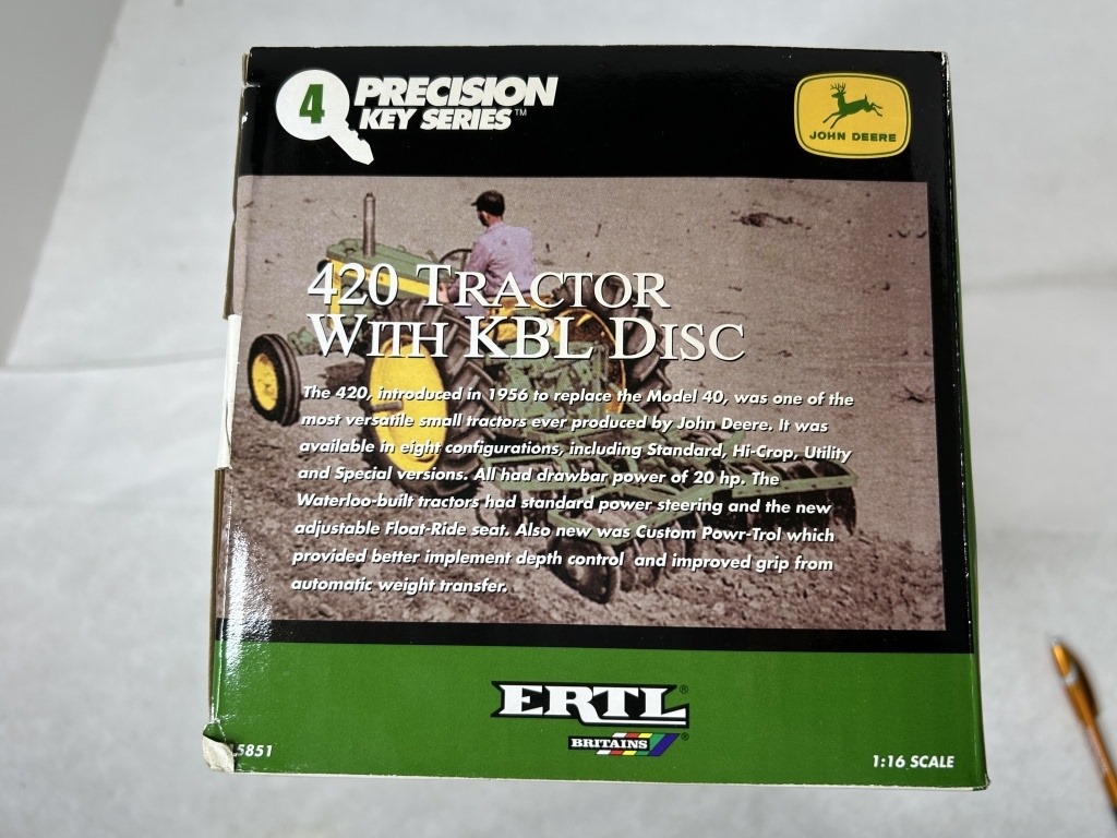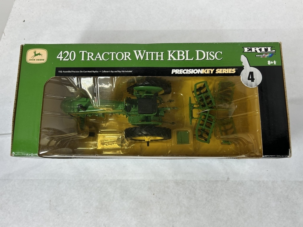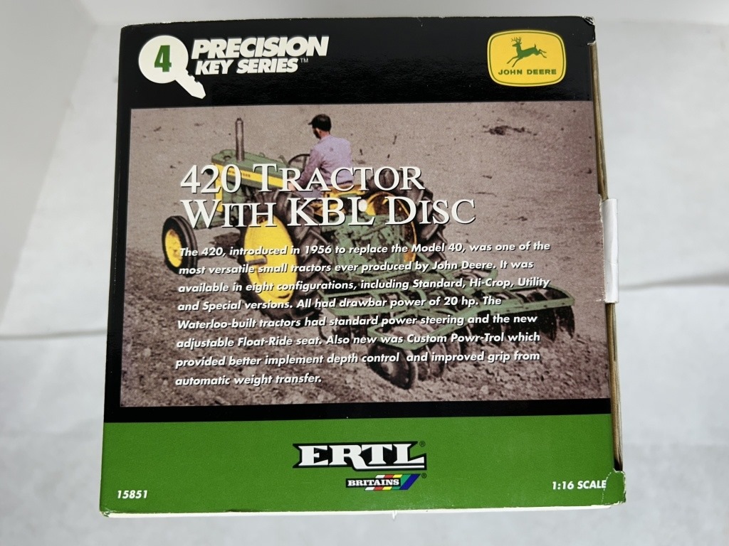 NIB ERTL 1/16 DIE CAST JOHN DEERE 420 TRACTOR WITH KBL DISC PRECISION KEY SERIES 4 WF MODEL #15851