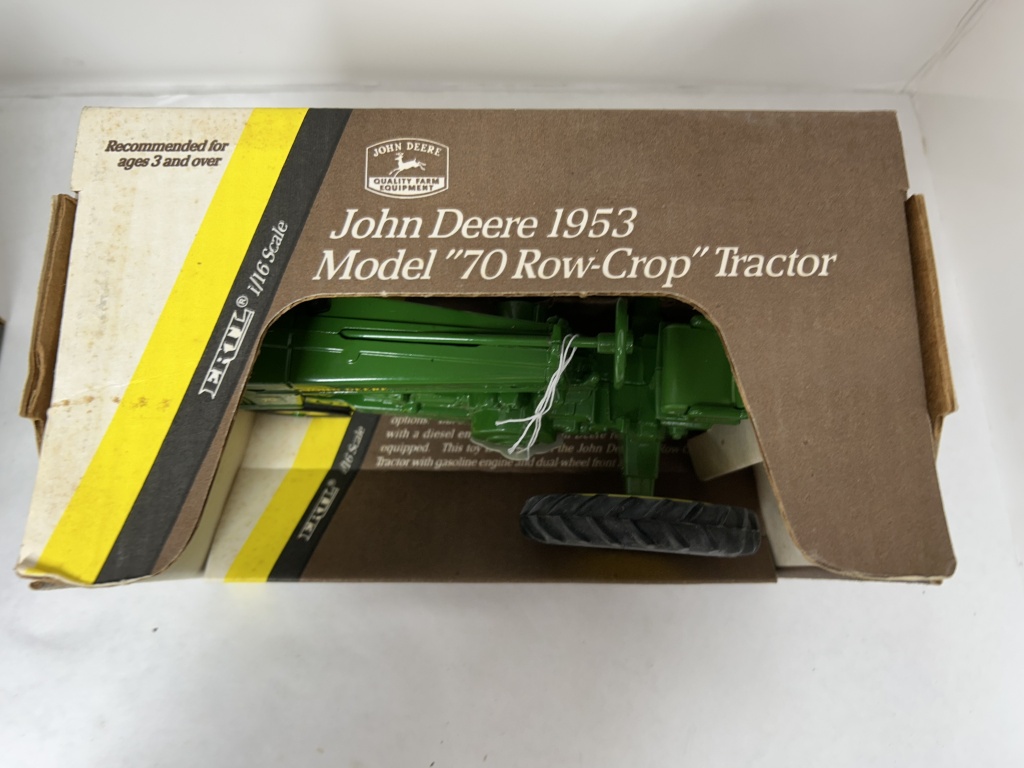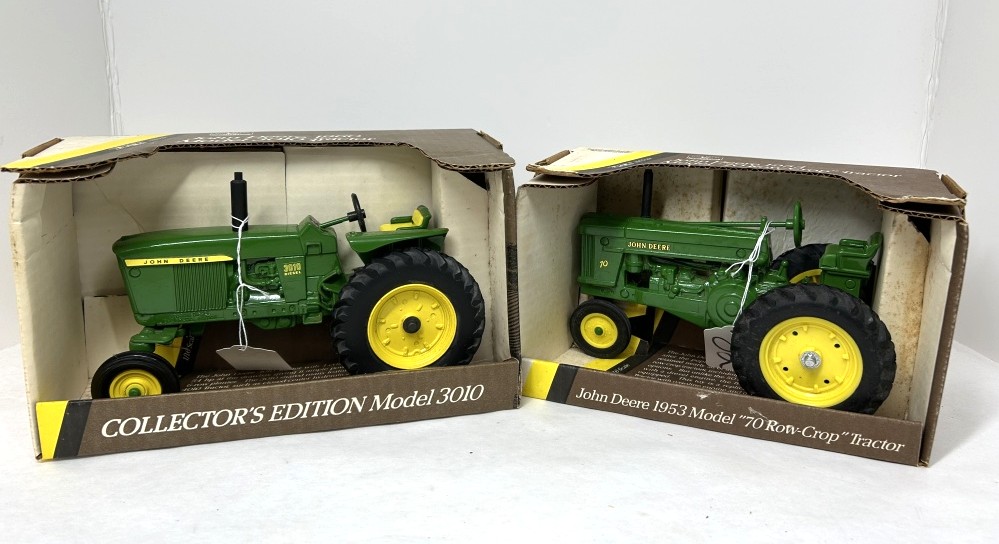 NIB 1/16 DIE CAST METAL JOHN DEERE MODEL 3010 & 1953 MODEL 70 ROW CROP TRACTORS TWO FOR ONE MONEY