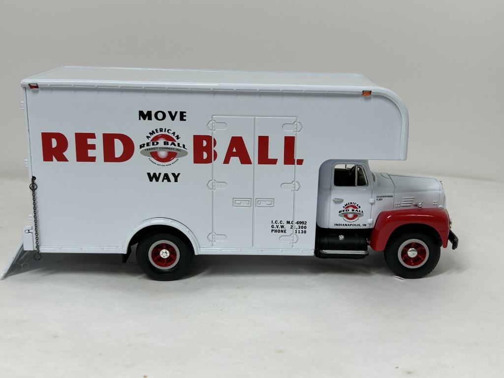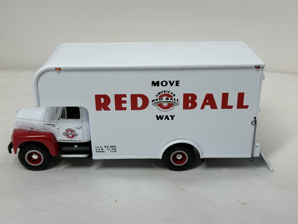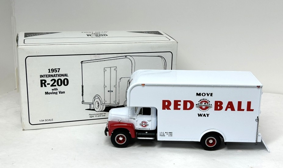 NIB 1/34 DIE CAST METAL PRECISION COLLECTIBLE FIRST GEAR 1957 INTERNATIONAL R200 MOVING VAN MOVE RED BALL COMPANY NO. 19 1466 AMERICAN RED BALL
